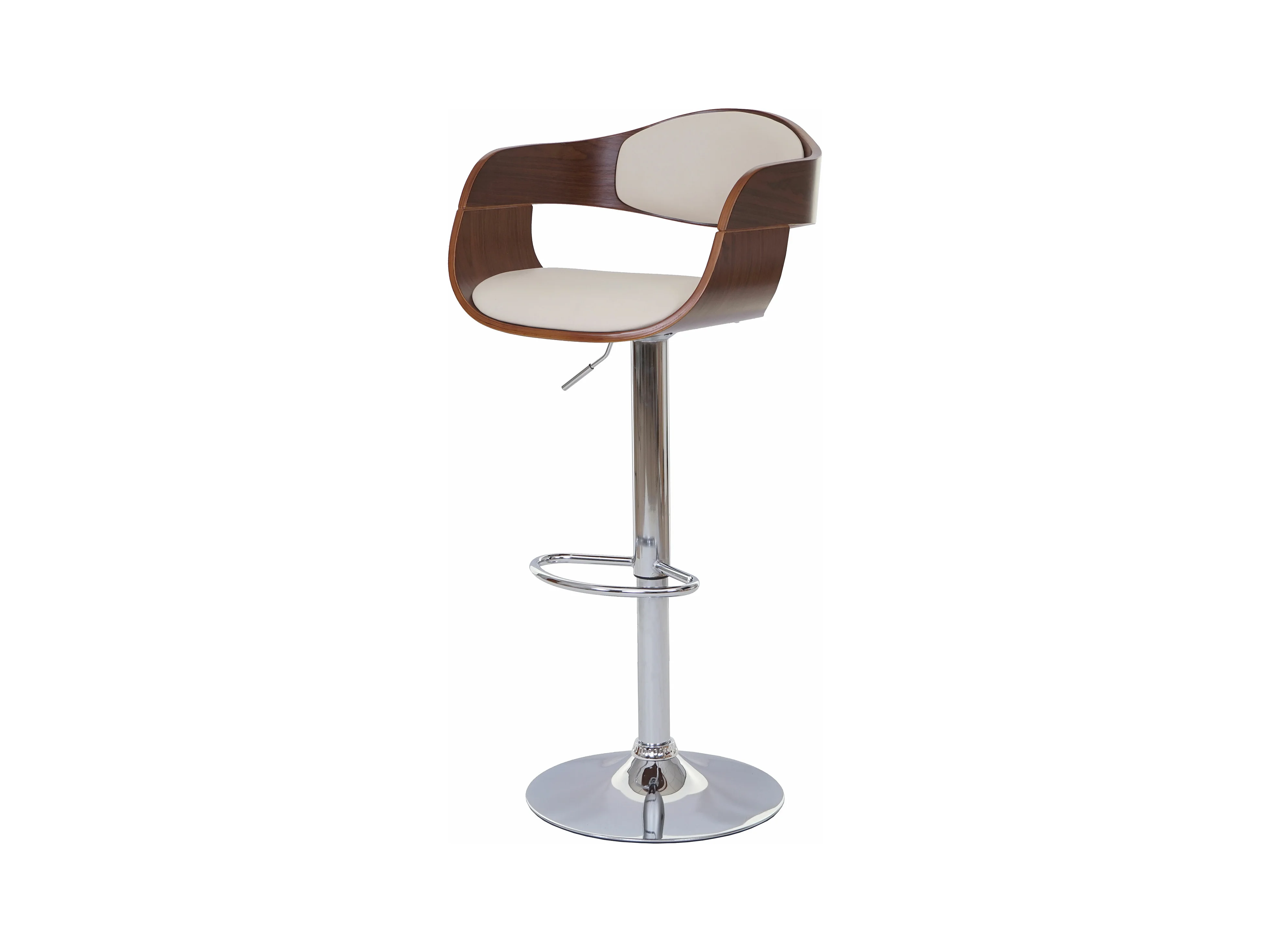 Barkruk MCW-A47, walnoot look, kunstleer crème