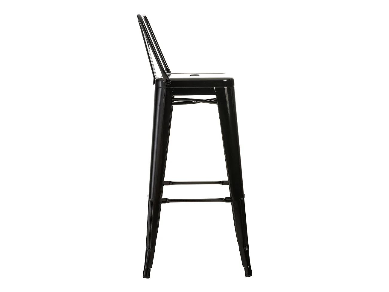 Metalen kruk in gelakt staal met hoge rugleuning (76cm) - Bistro - Zwart