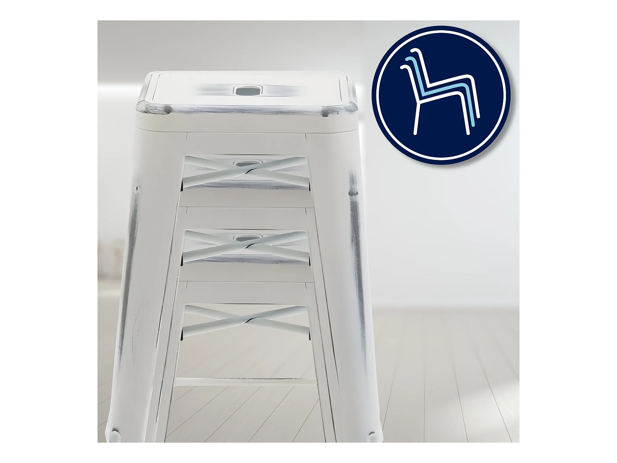 Kalax versterkte glanzende stalen industriële hoge kruk 76 cm - Top van het assortiment-Kleur Wit