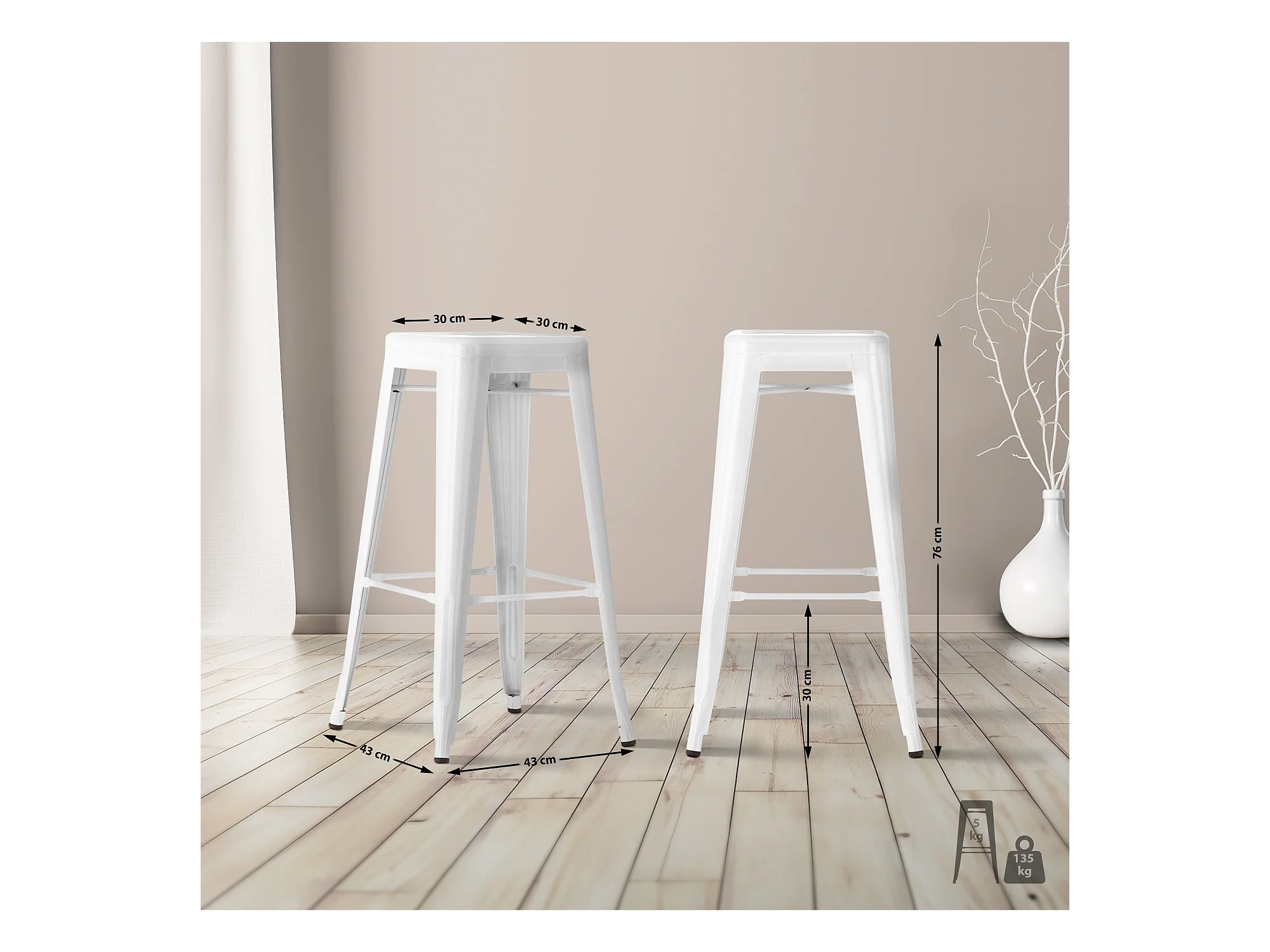 Kalax versterkte mat stalen industriële hoge kruk 76 cm - Top van het assortiment-Kleur Wit