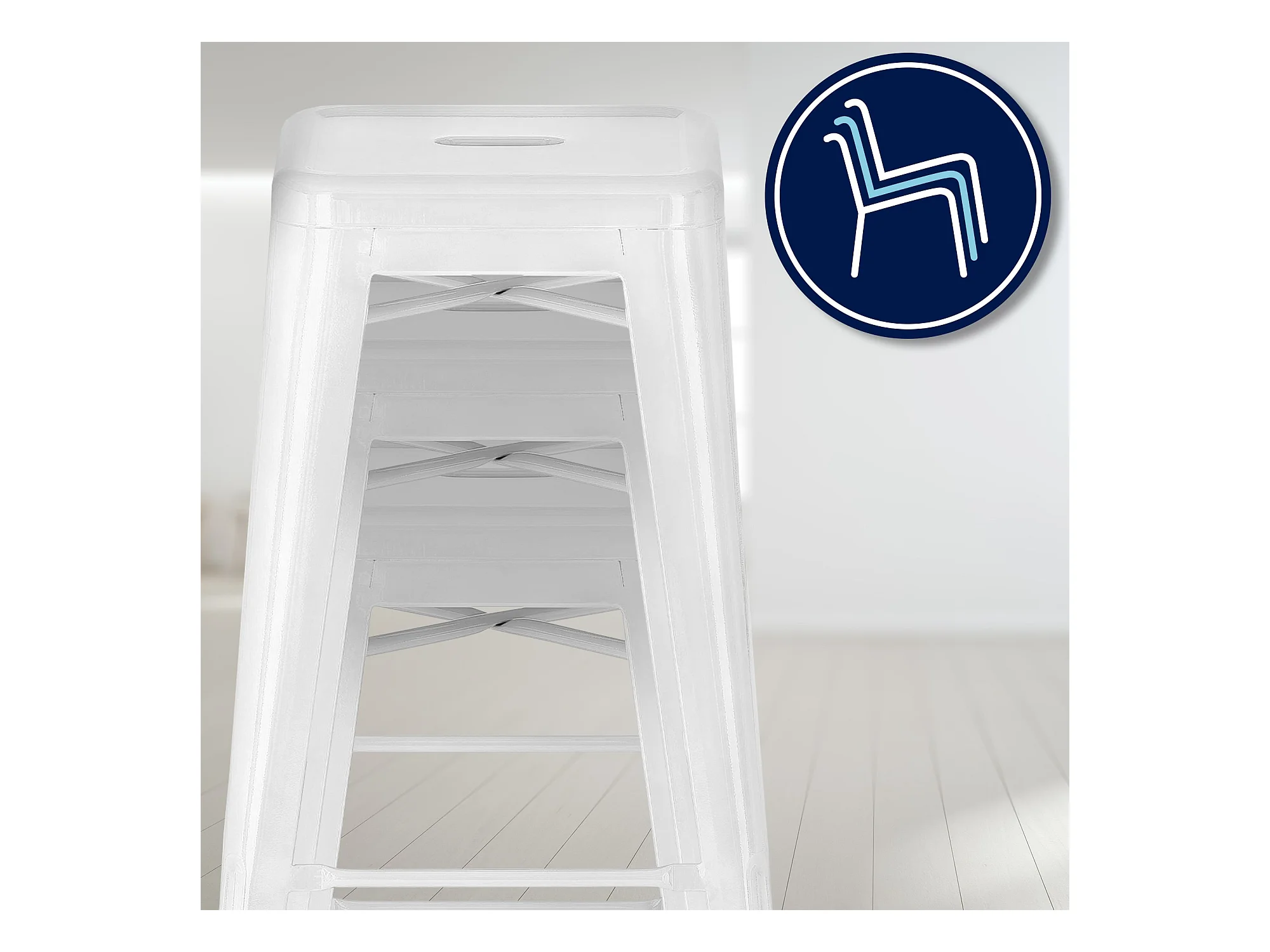 Kalax versterkte glanzende stalen industriële hoge kruk 76 cm - Top van het assortiment-Kleur Wit
