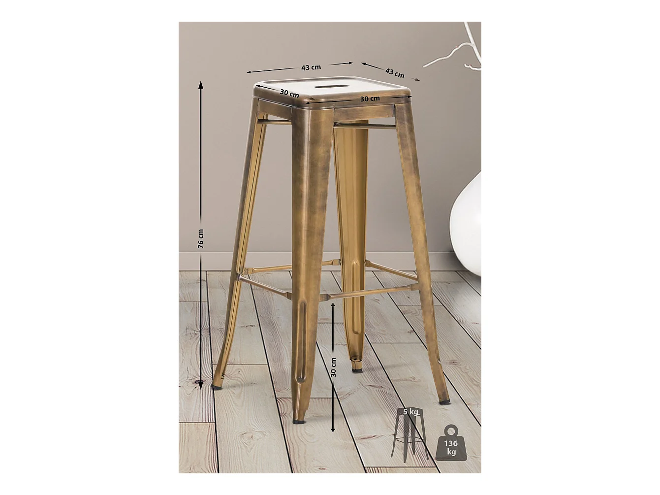 Kalax versterkte glanzende stalen industriële hoge kruk 76 cm - Top van het assortiment-Kleur gouden