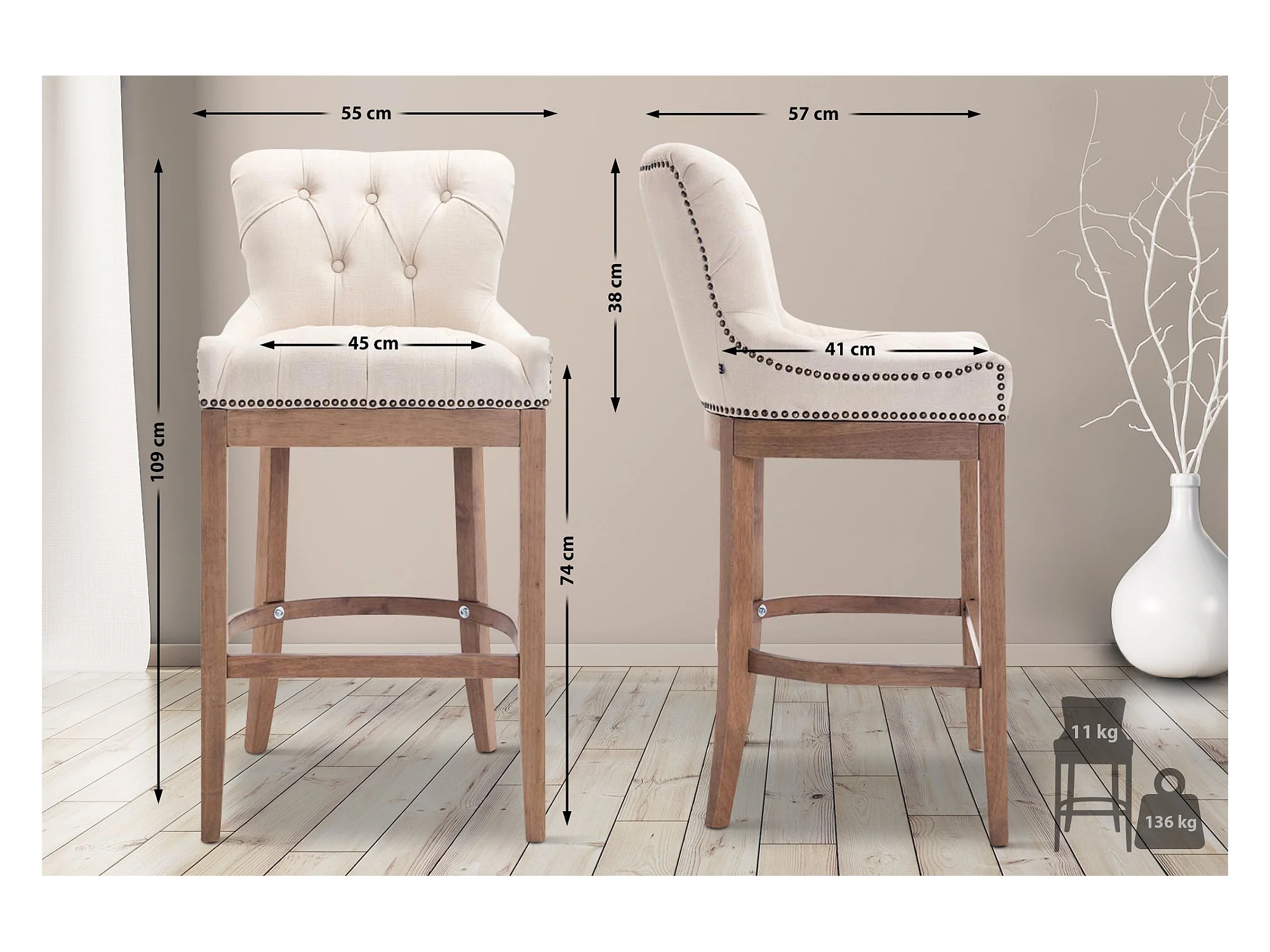 Barkruk - Stof - creme - Lakewood