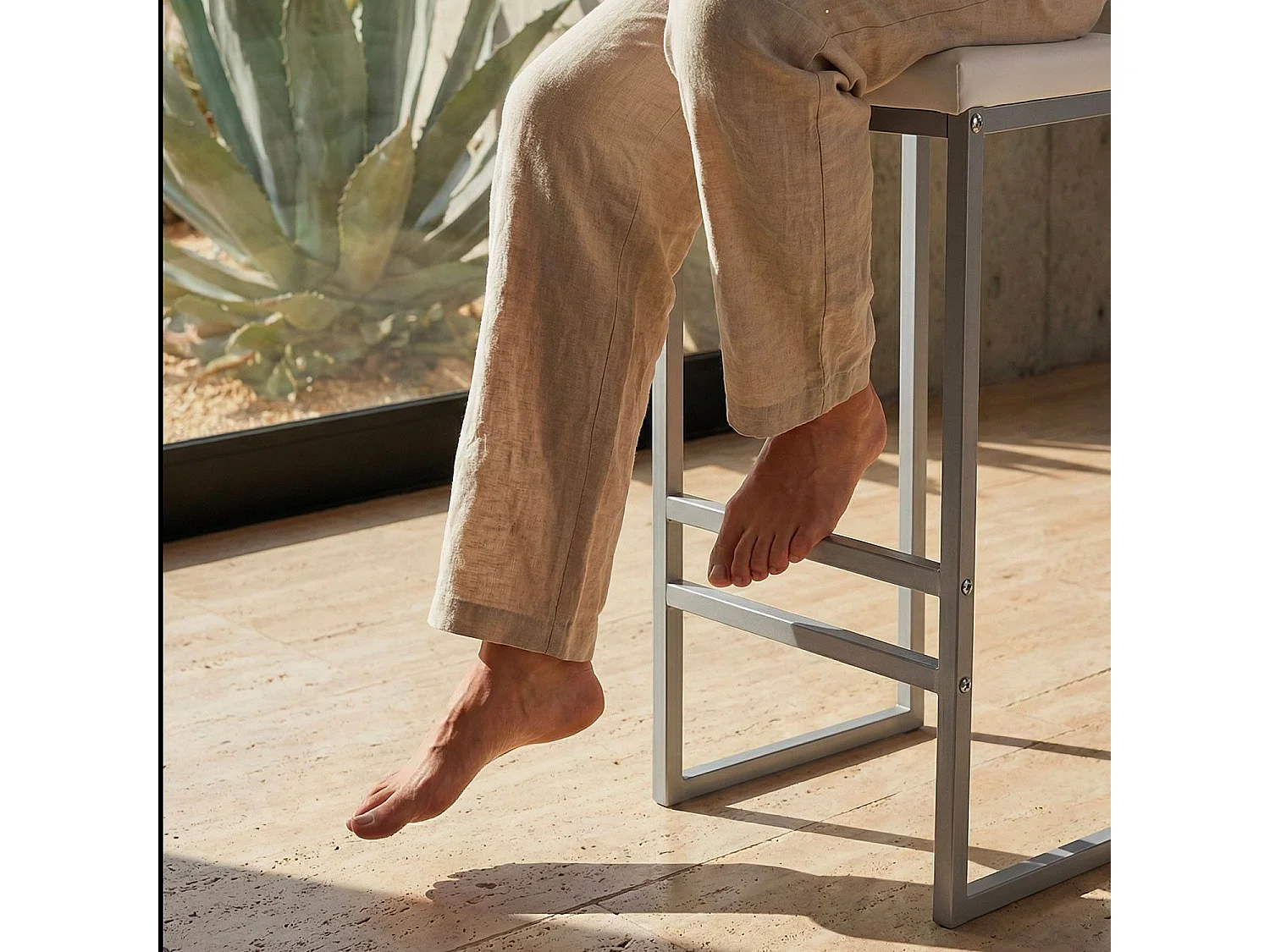 Barkruk van Metaal Drakkar Zilver en Wit Fluweel - Comfortabel en Elegant