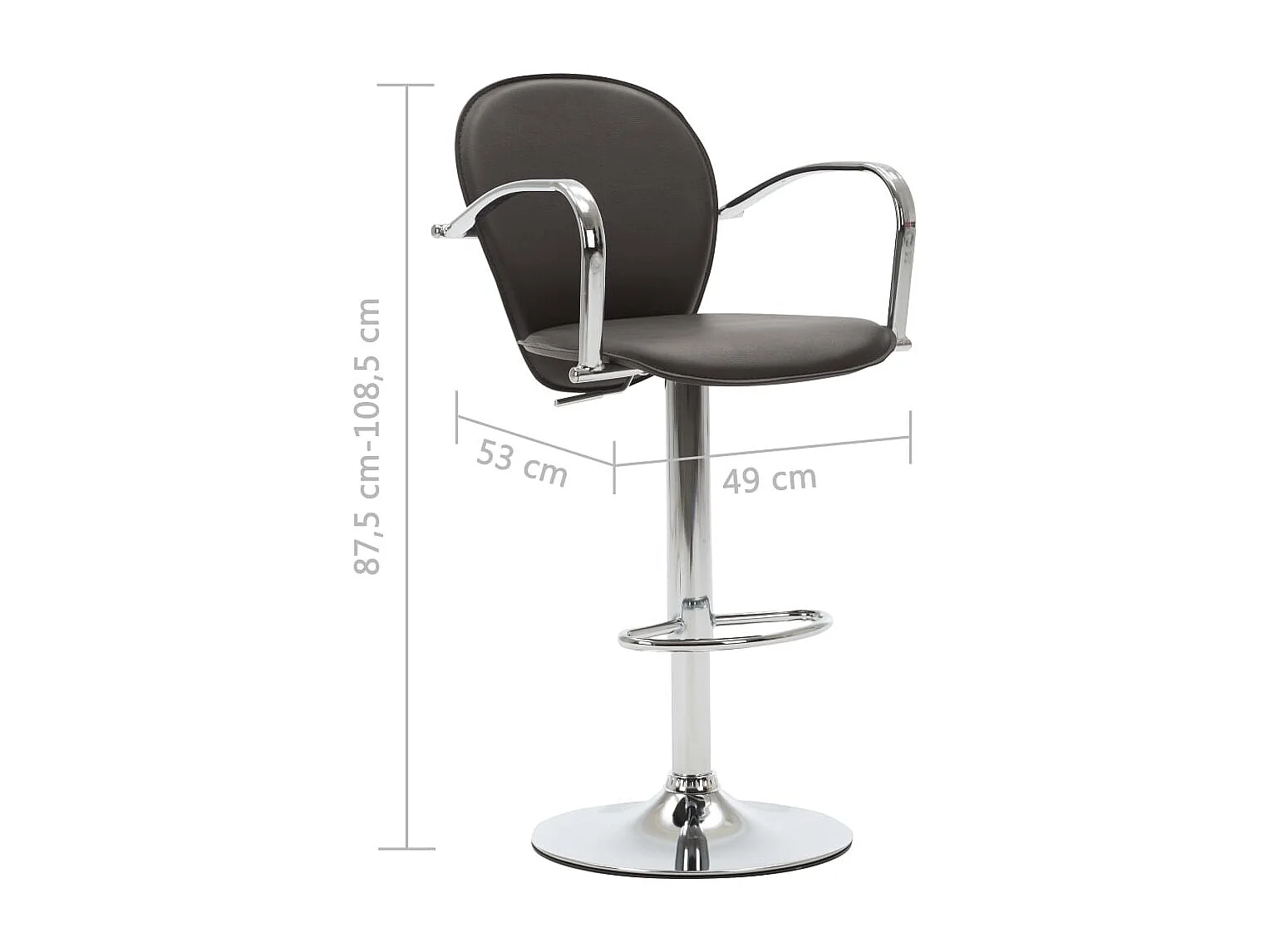 Set van 2 bruine kunstleren draaibare barkrukken, zwart metalen frame, in hoogte verstelbaar