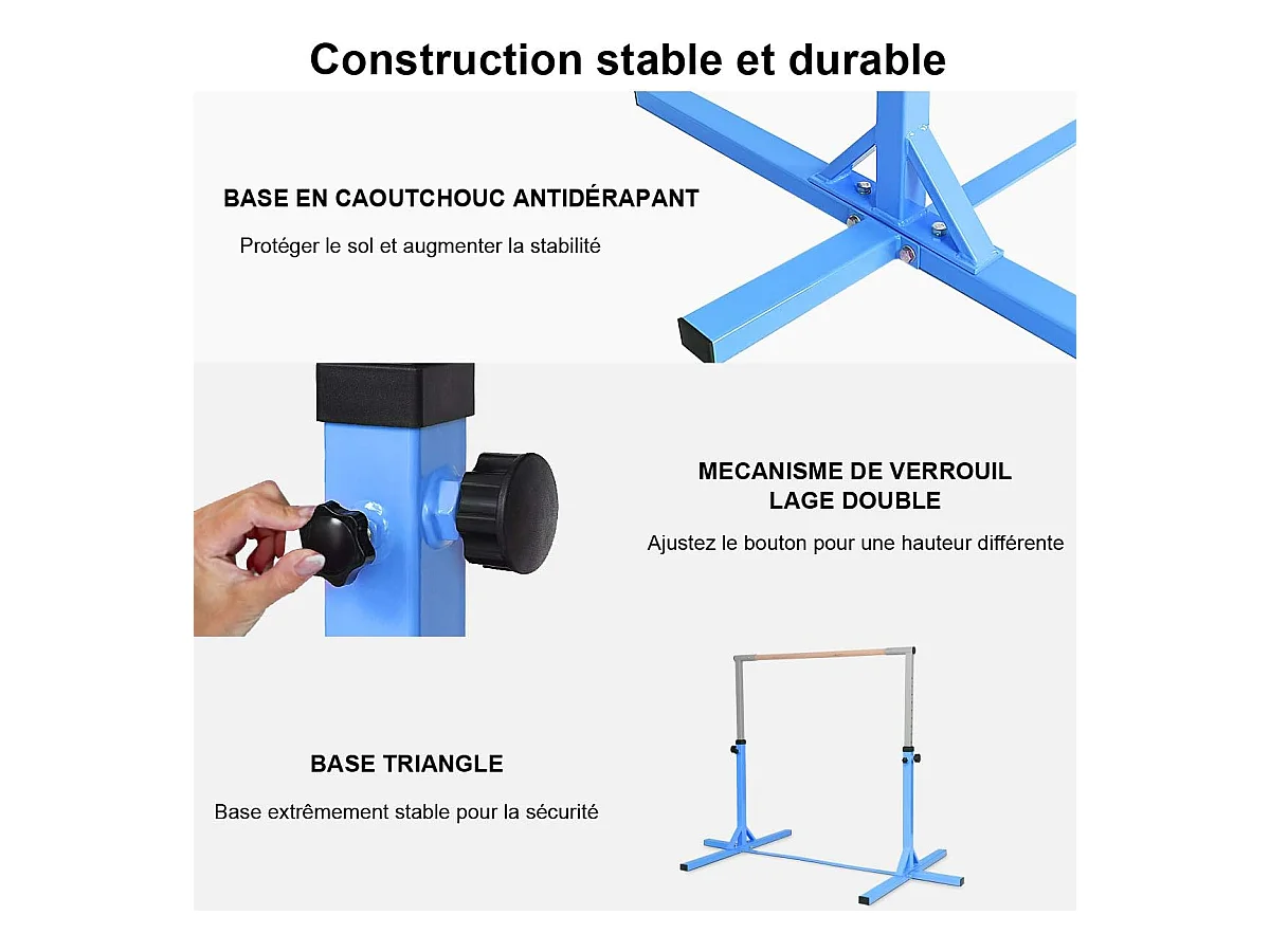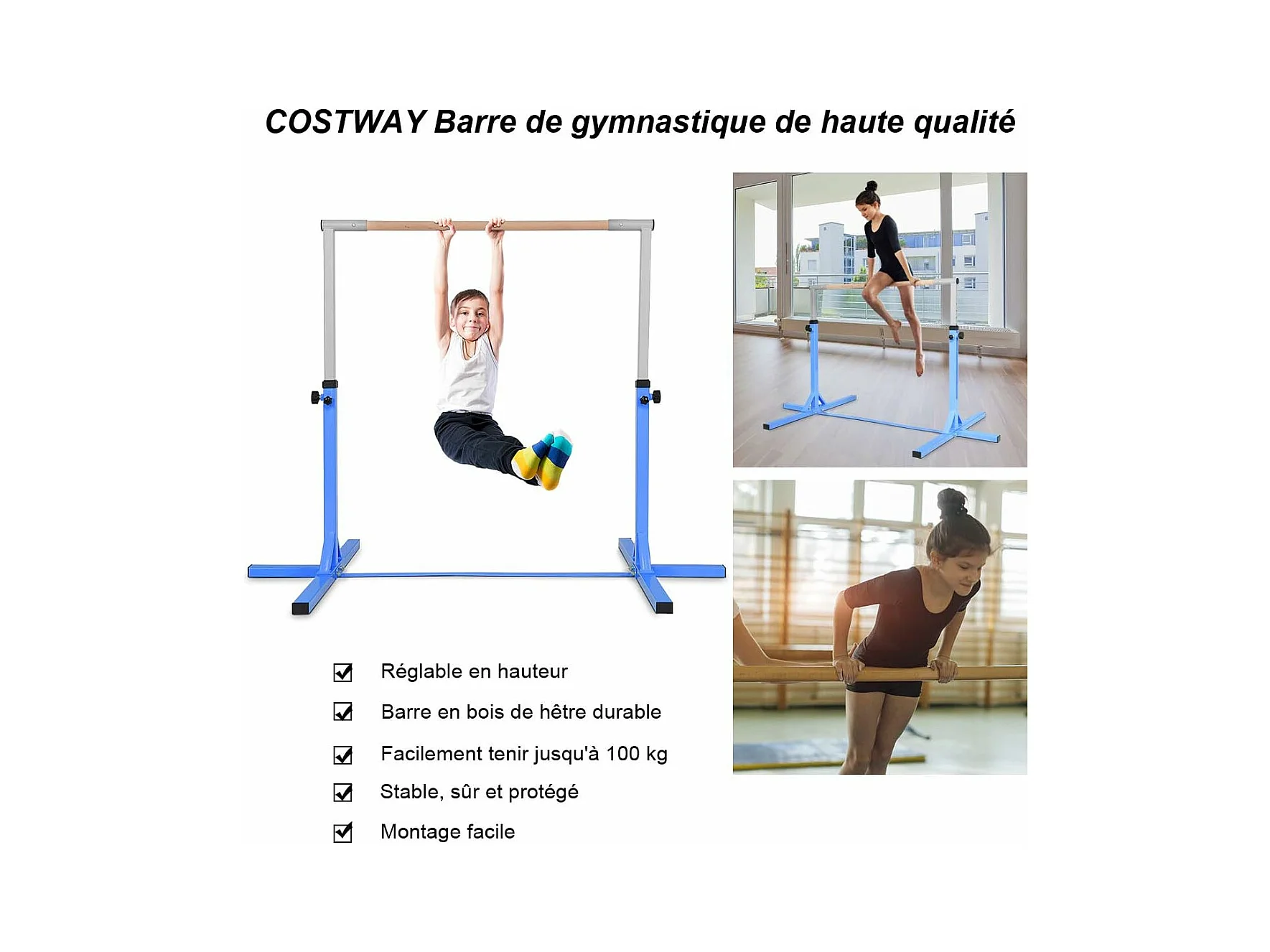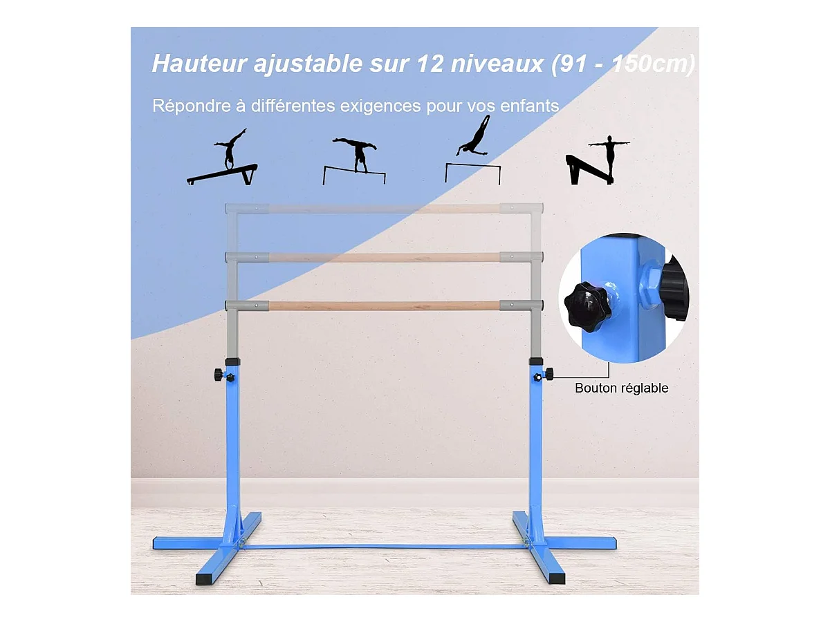 Double Barre de Danse Classique Hauteur Réglable 20-119CM avec Eponge Base Rotative Charge Max 50KG