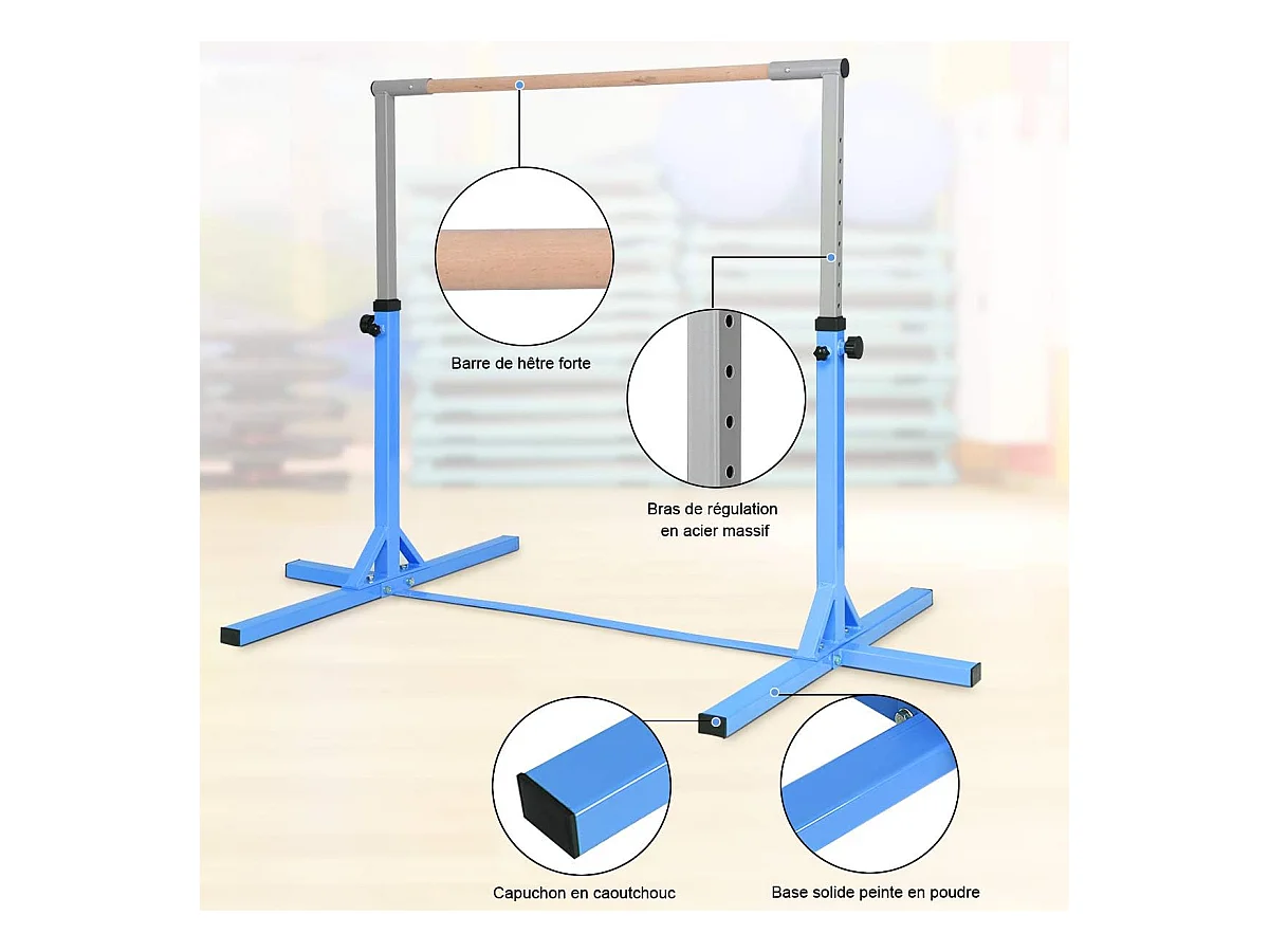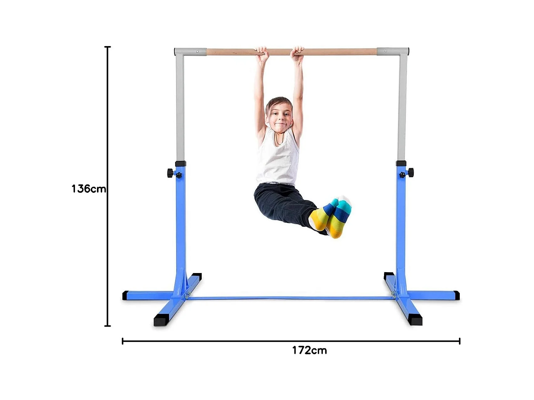 Gymnastiekstang in hoogte verstelbaar staal 91-150 cm Draagvermogen 100 kg voor school, thuis, tuin Diameter 4 cm roze