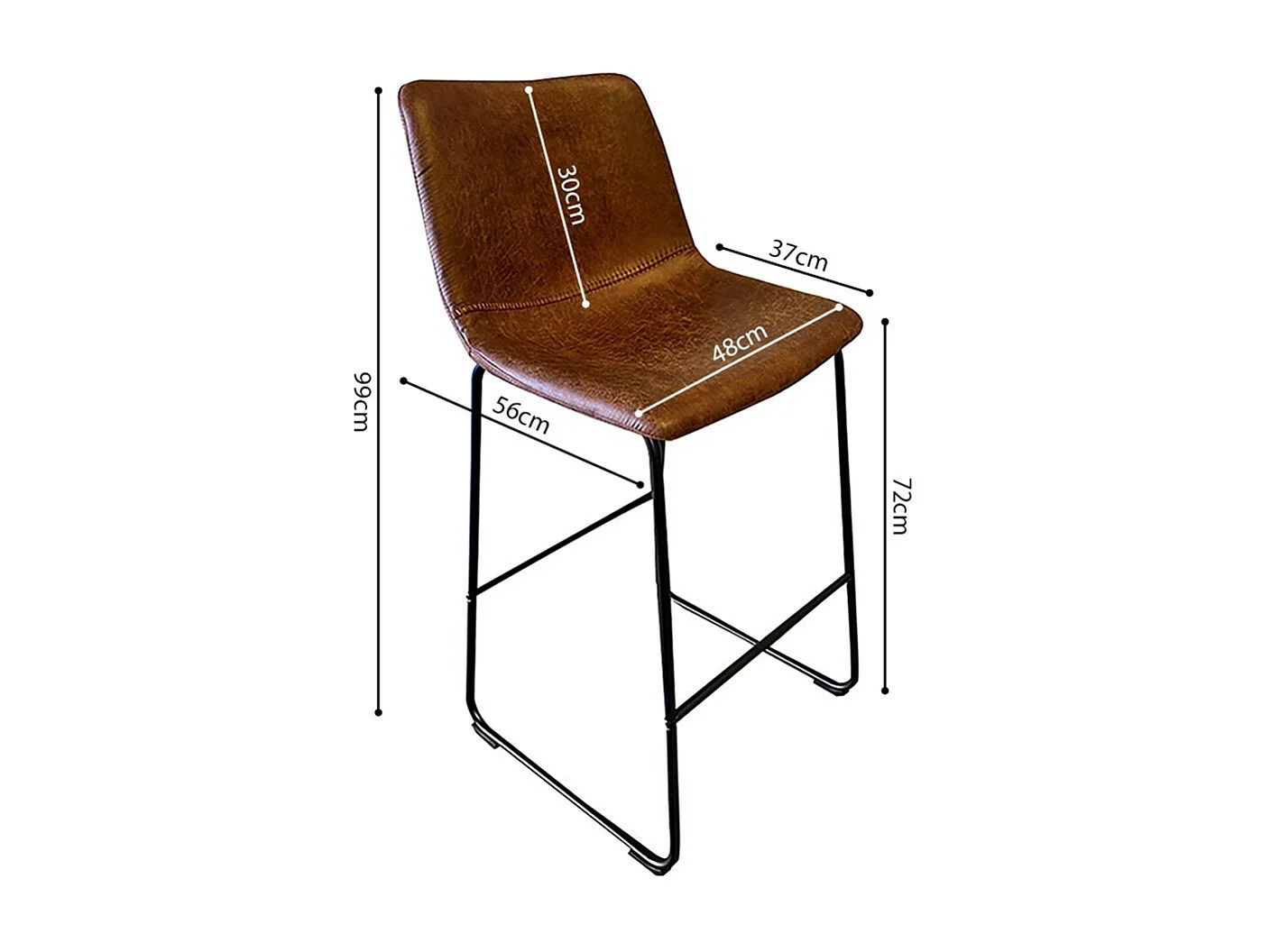 Barkruk 'Ozon' PU Bruin, afmetingen: H98 x B45 x D49 cm