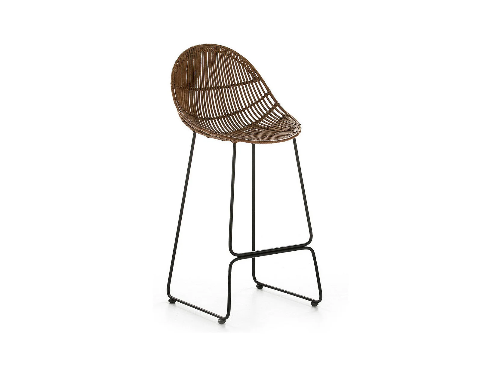 Randry natuurlijke rieten barkruk en zwart metalen poten