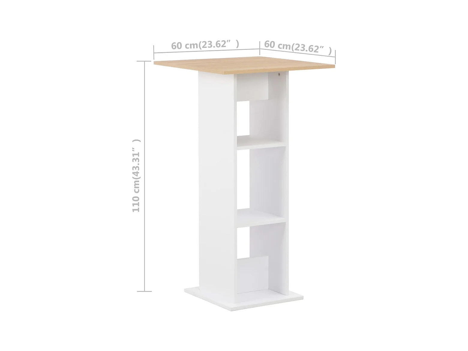 Bartafel 60x60x110 cm wit en sonoma eikenkleurig