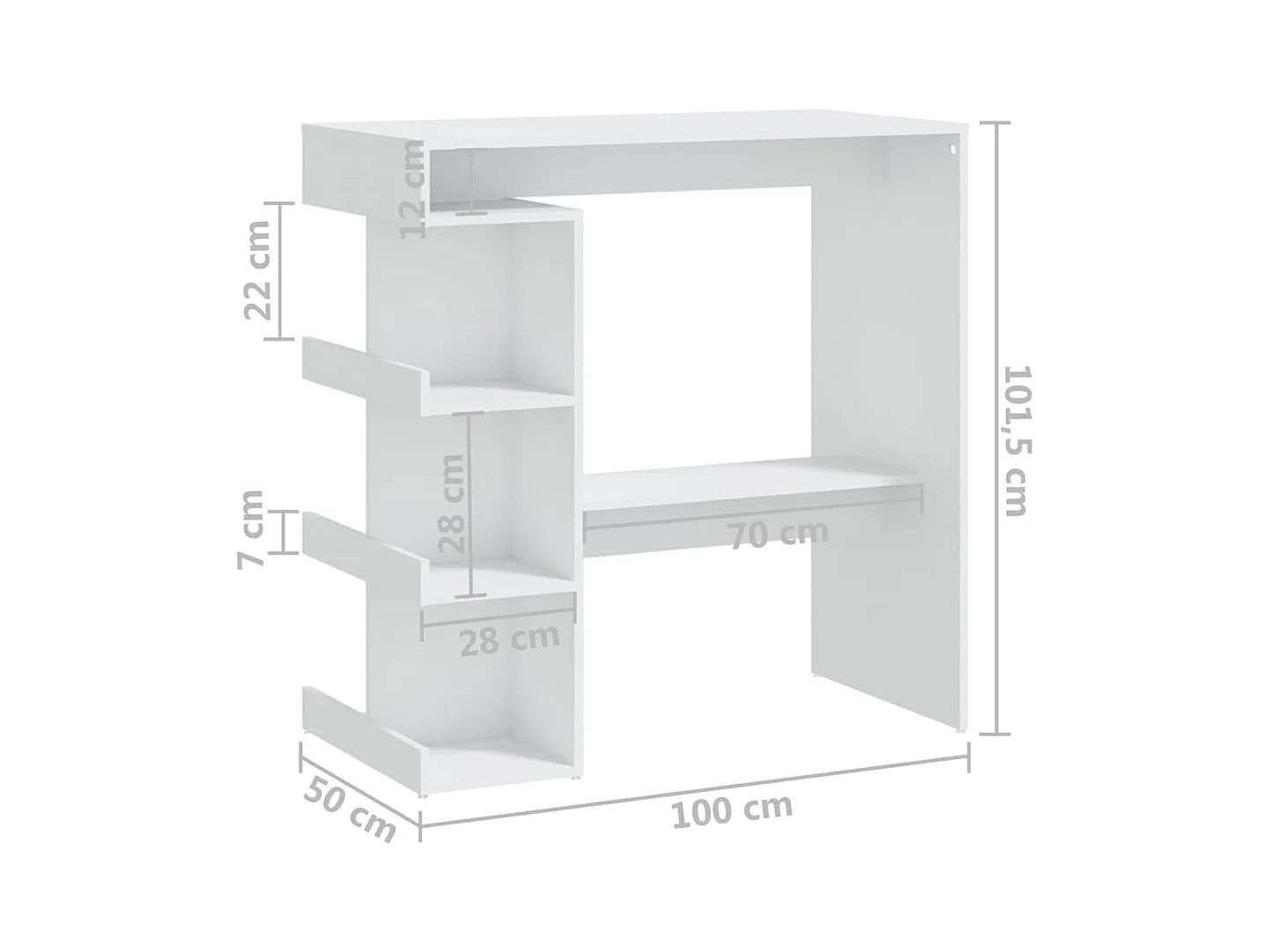 Bartafel met opbergrek 100x50x101,5 cm hoogglans wit