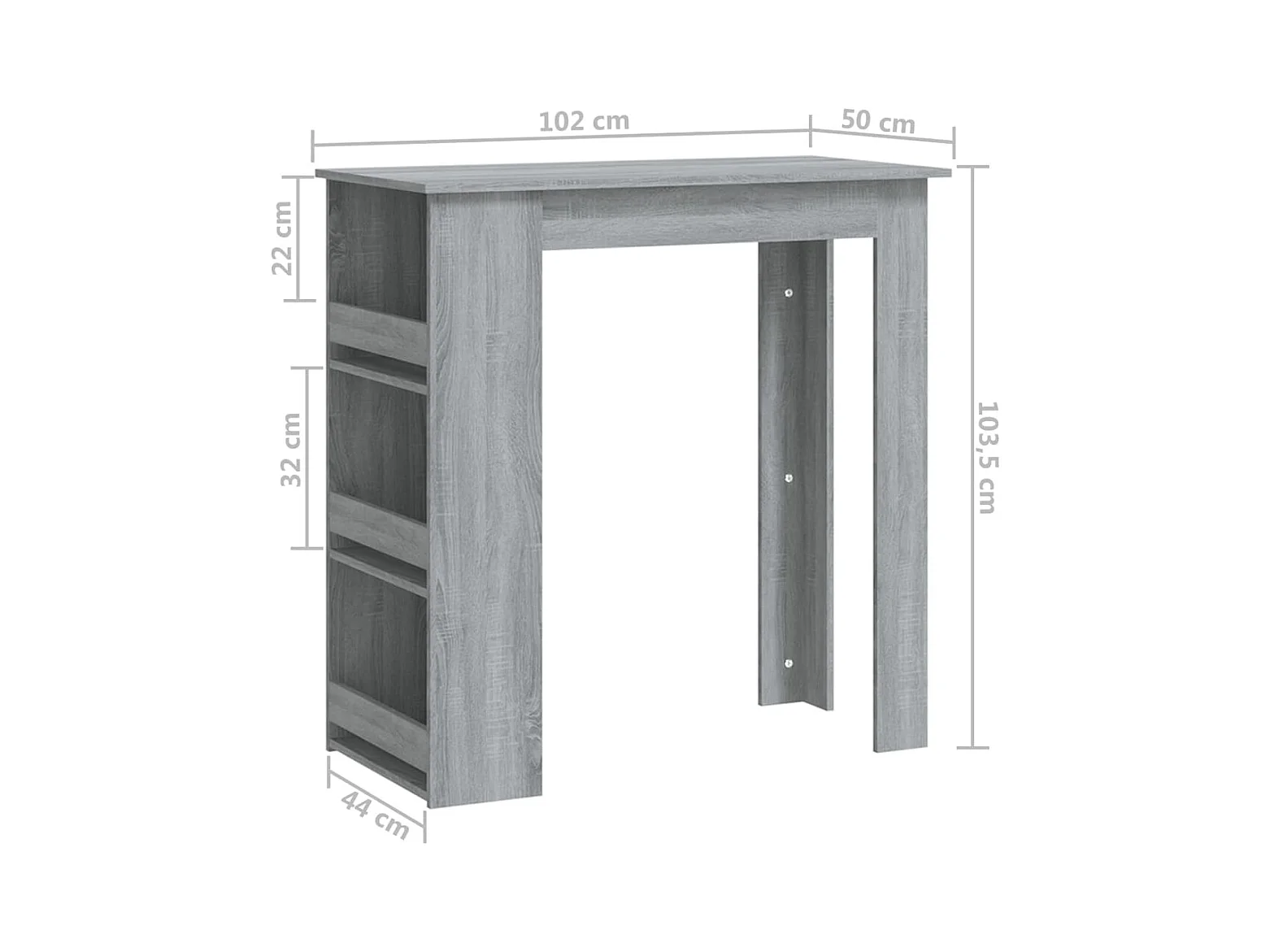 Bartafel met opbergrek 102x50x103,5 cm hout grijs sonoma