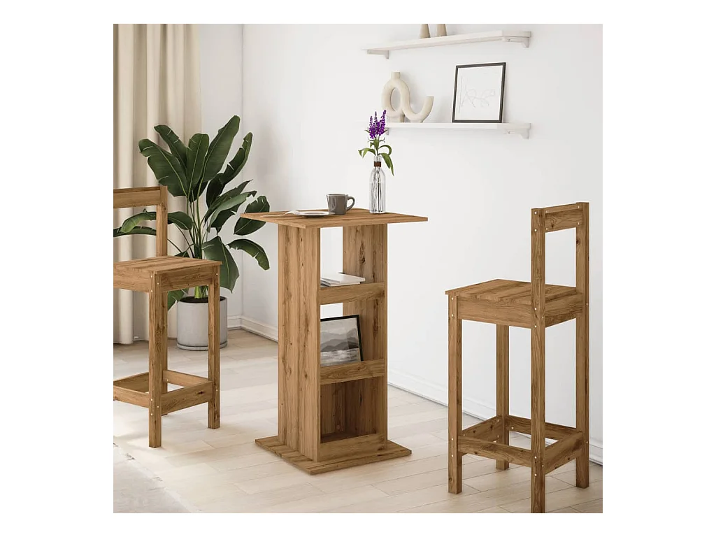 Bartafel met opbergruimte 60x60x102 cm hout artisanaal eiken