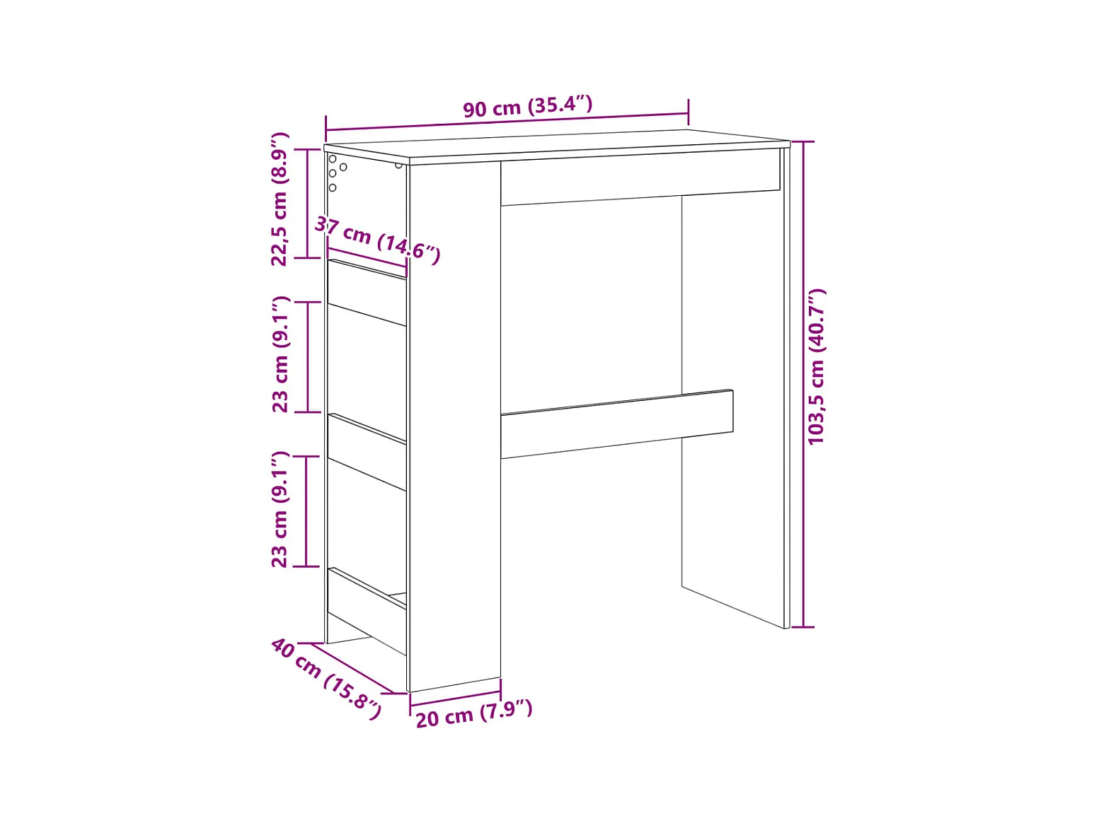 Bartafel met rekken 90x40x103,5 cm bewerkt hout grijs sonoma