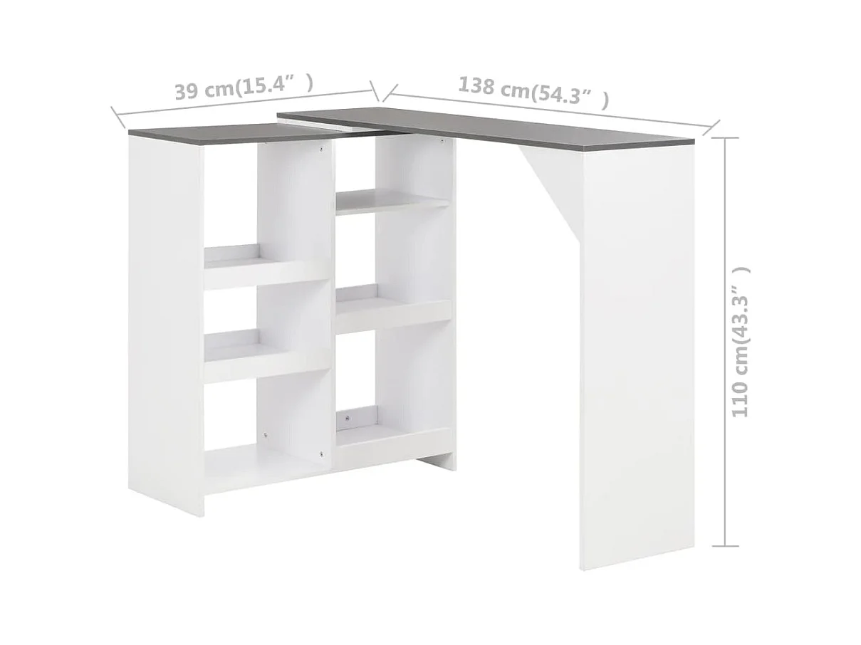 Bartafel met verplaatsbaar schap 138x39x110 cm wit NL123127