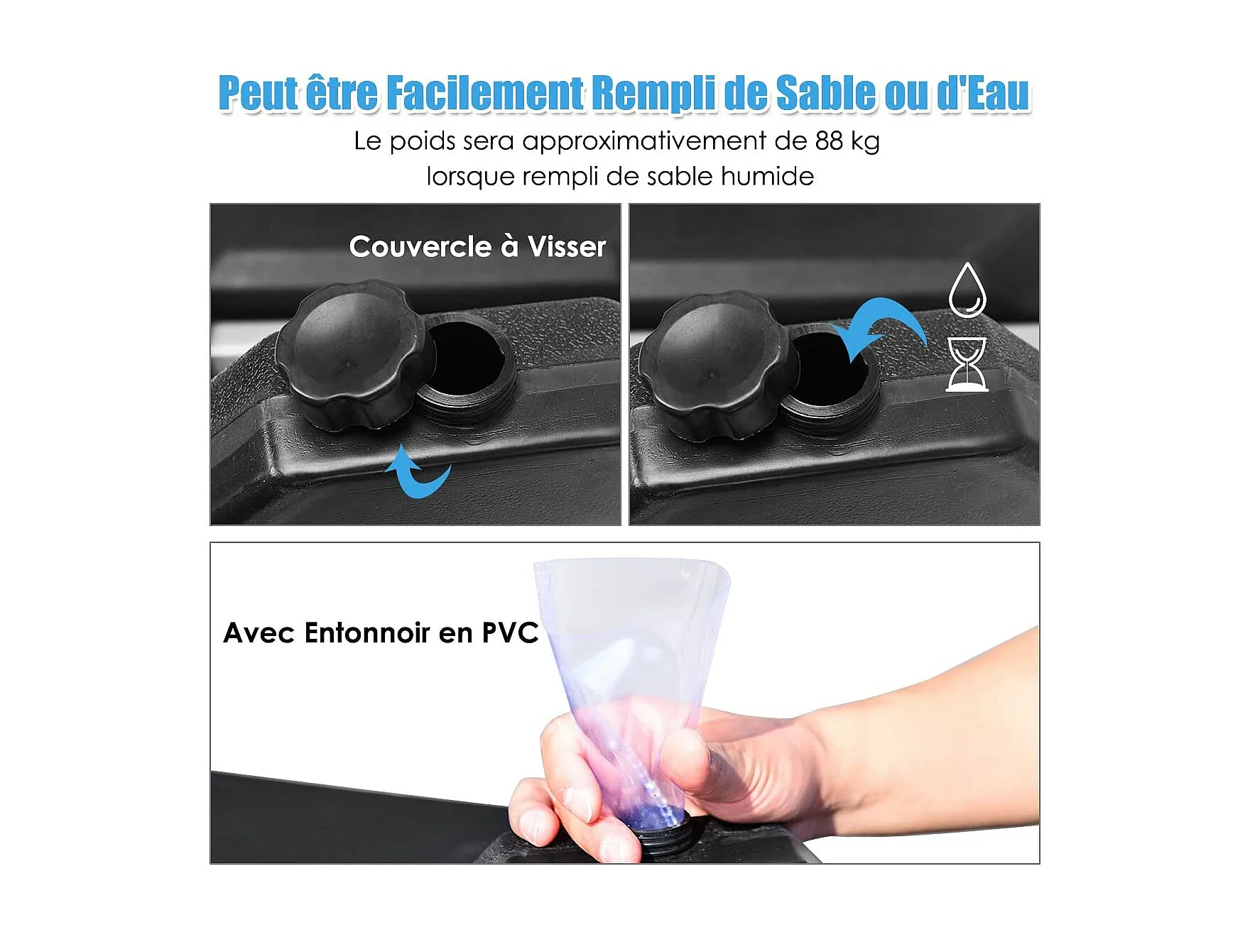 Base de Parasol Lourd 4 Plaques 83 x 83cm Remplie d'Eau ou de Sable 70 kg avec Trous de Remplissage pour Parasol Déporté