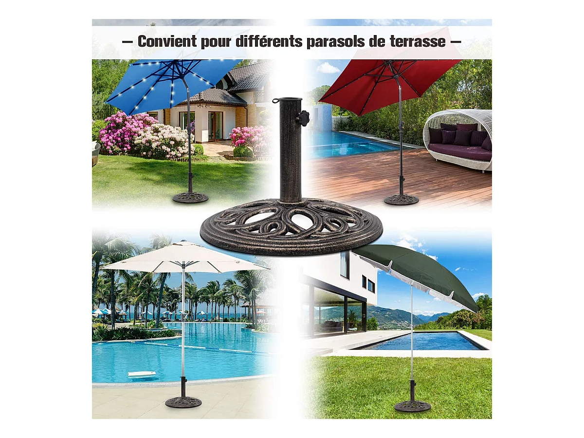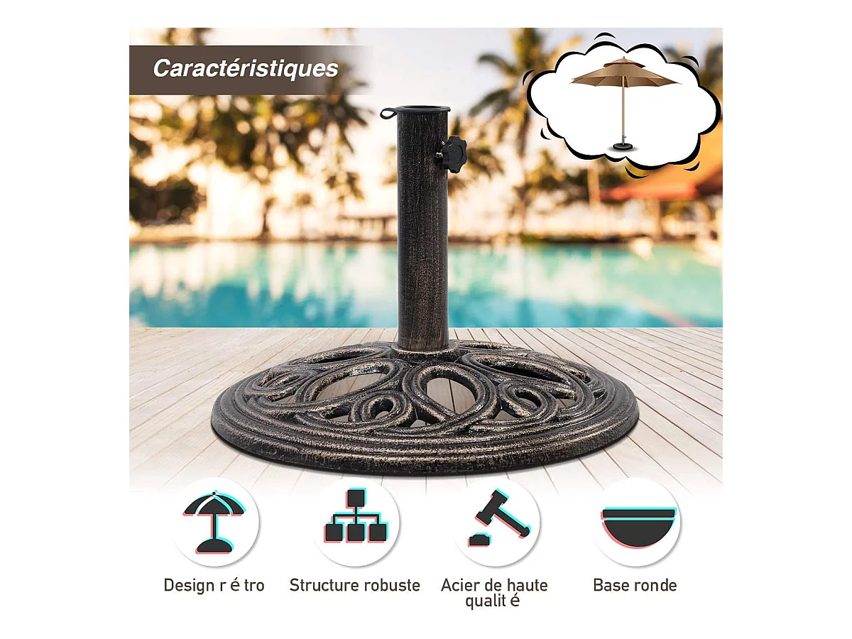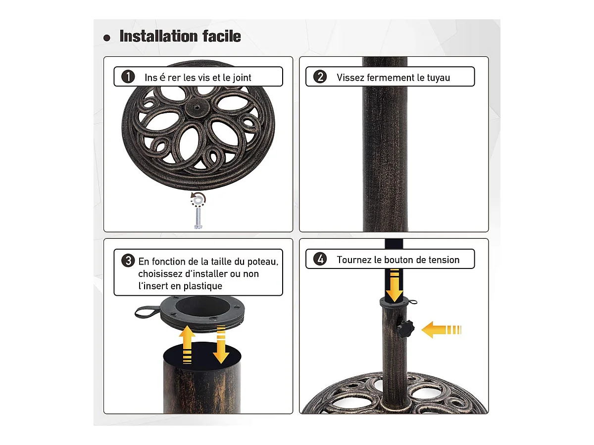 Base de Parasol Support de Parasol en Fonte Solide pour Colonne de Parapluie 38mm/48mm Intérieure et Extérieure