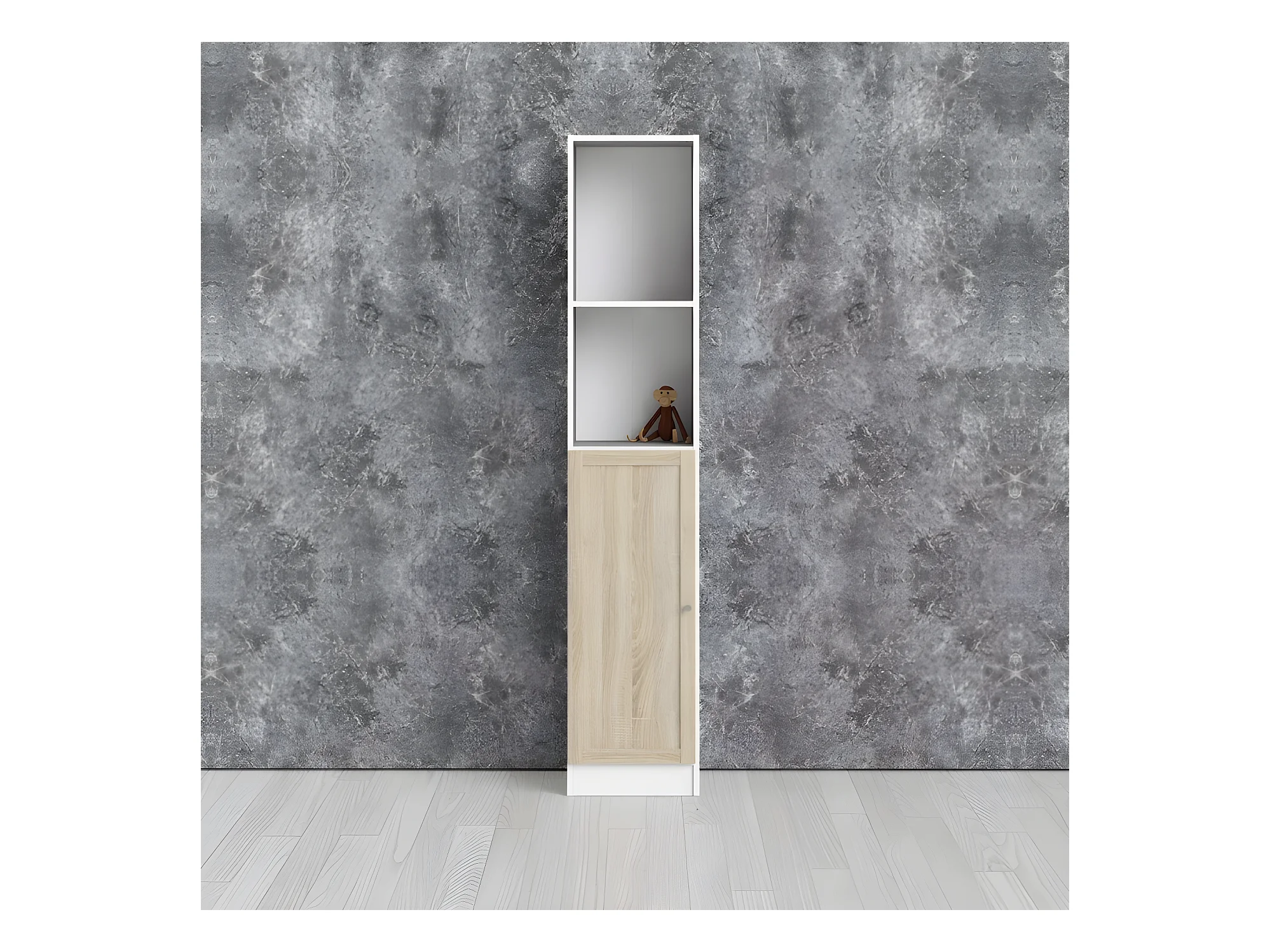 Base wandkast 1 plank en 1 deur wit, eiken structuur decor.