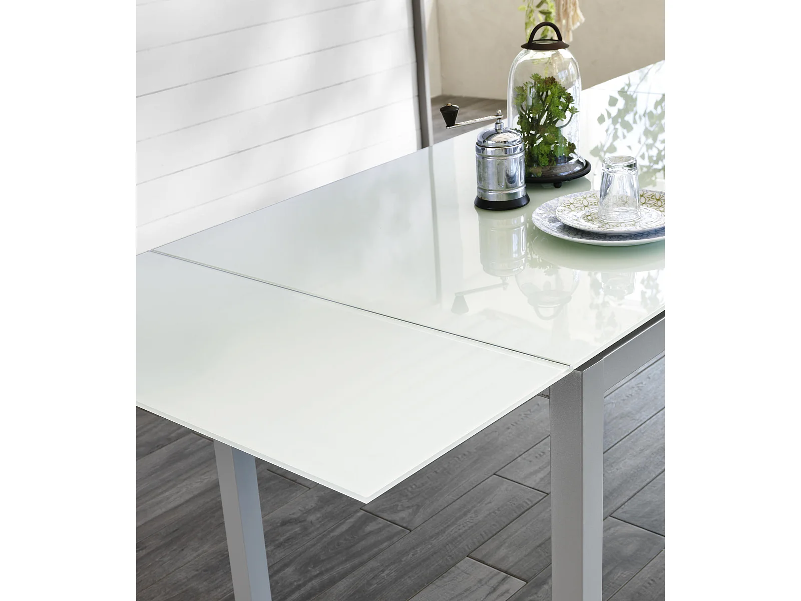 Baud - Uitschuifbare tafel (110/170 x 75 cm) in wit gehard glas