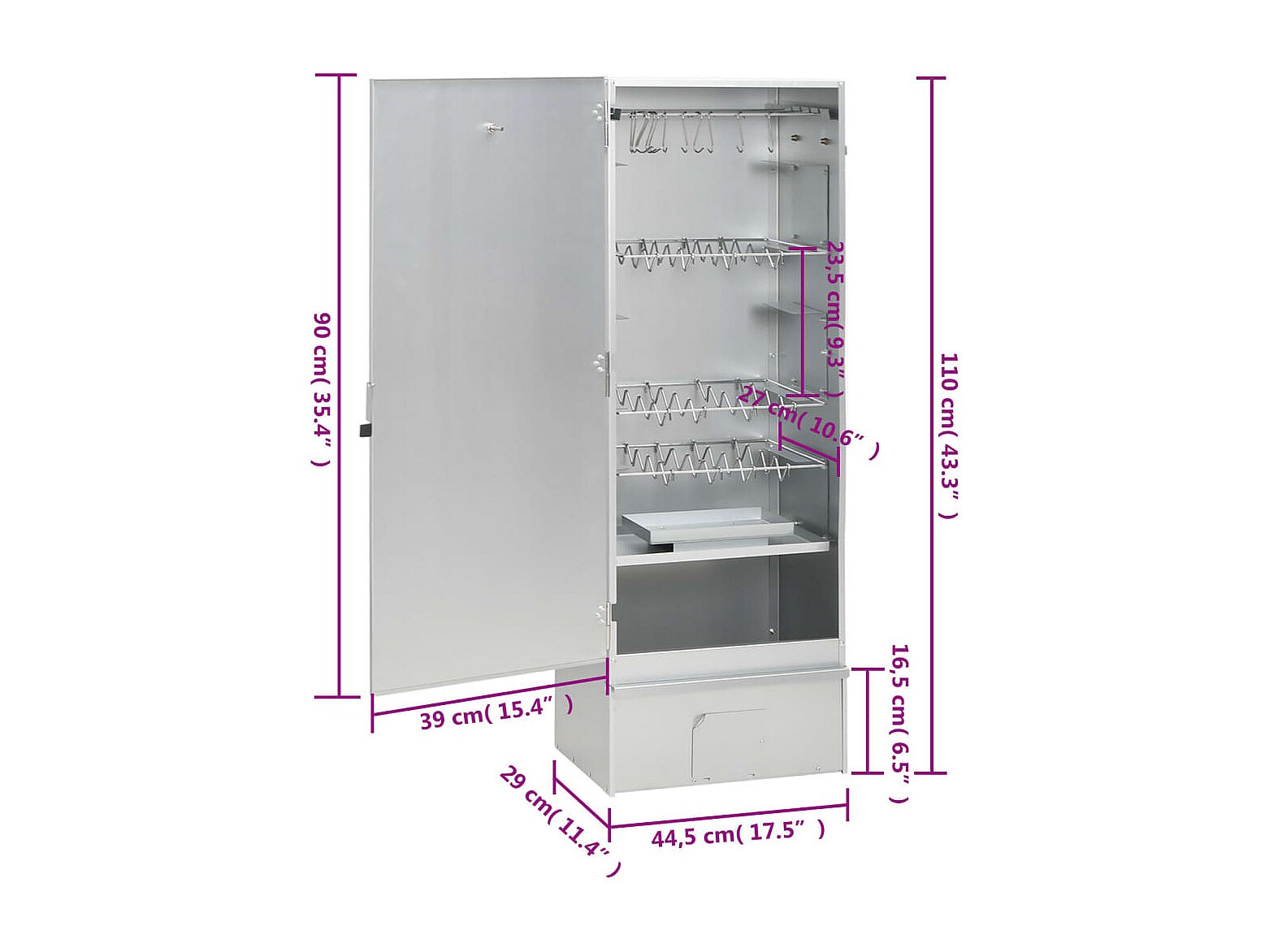 BBQ-rookoven met houtsnippers 44,5x29x110 cm staal