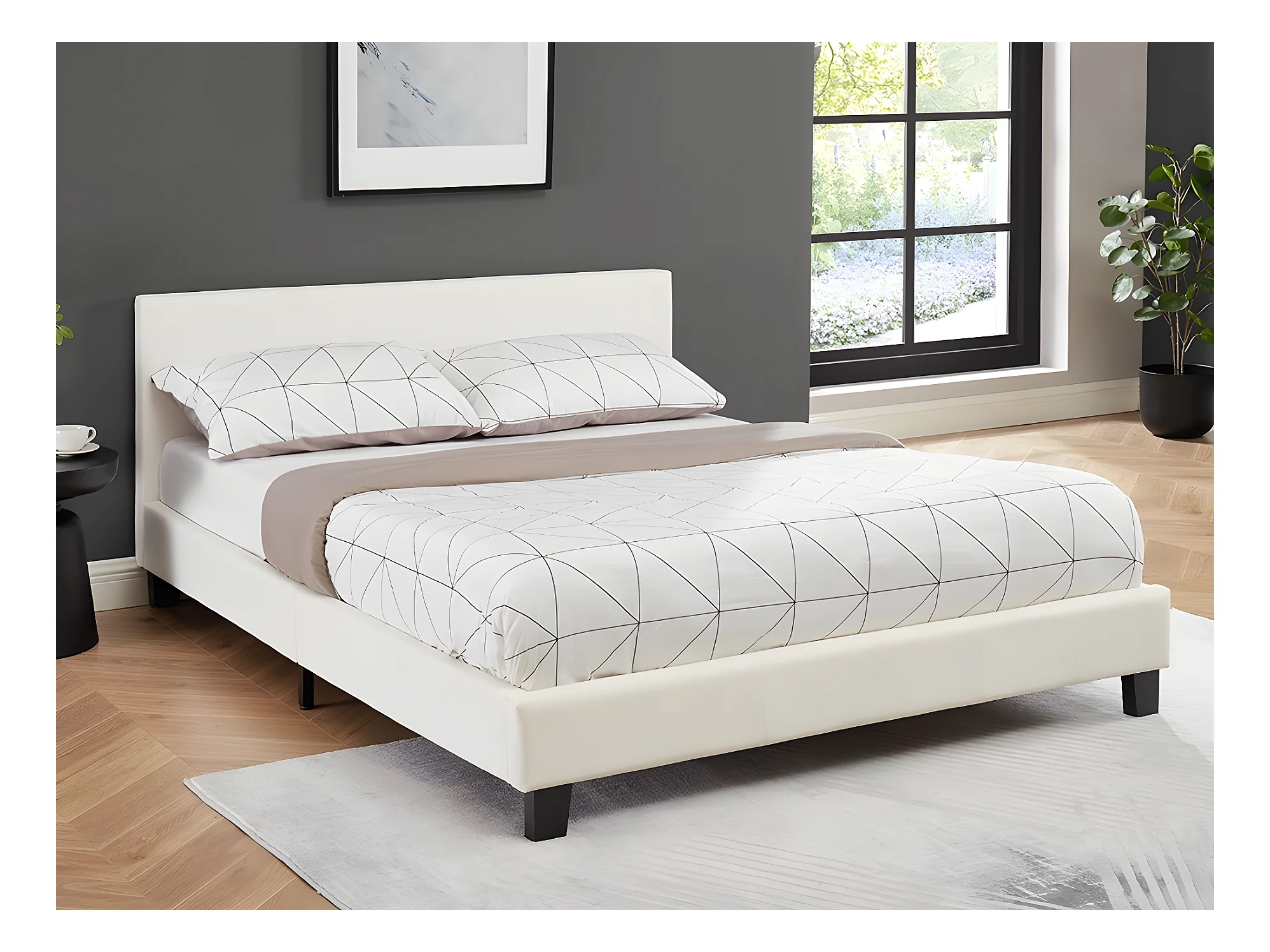 Bed 140 x 190 cm - Kunstleer - Wit + matras - CORNELIUS II