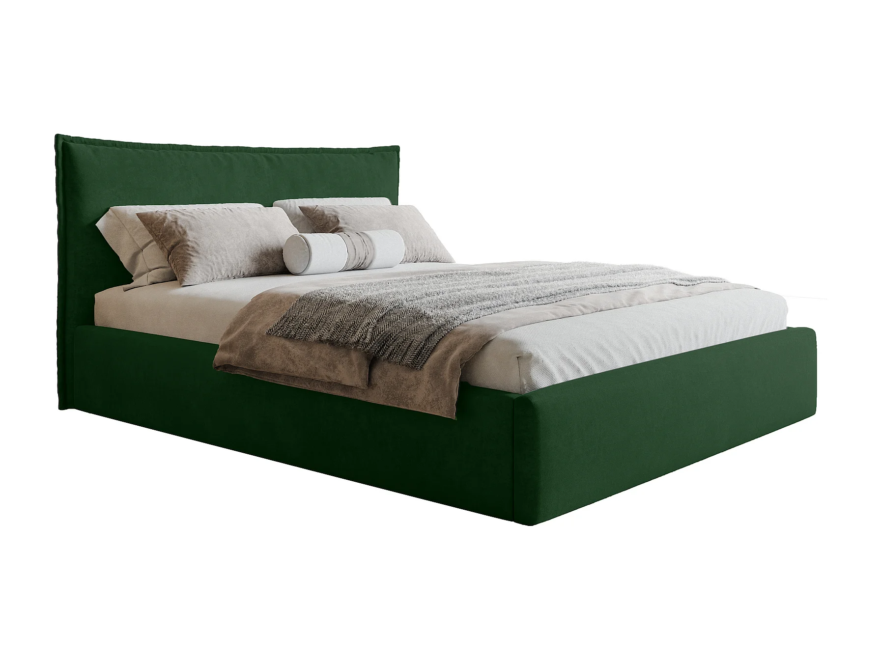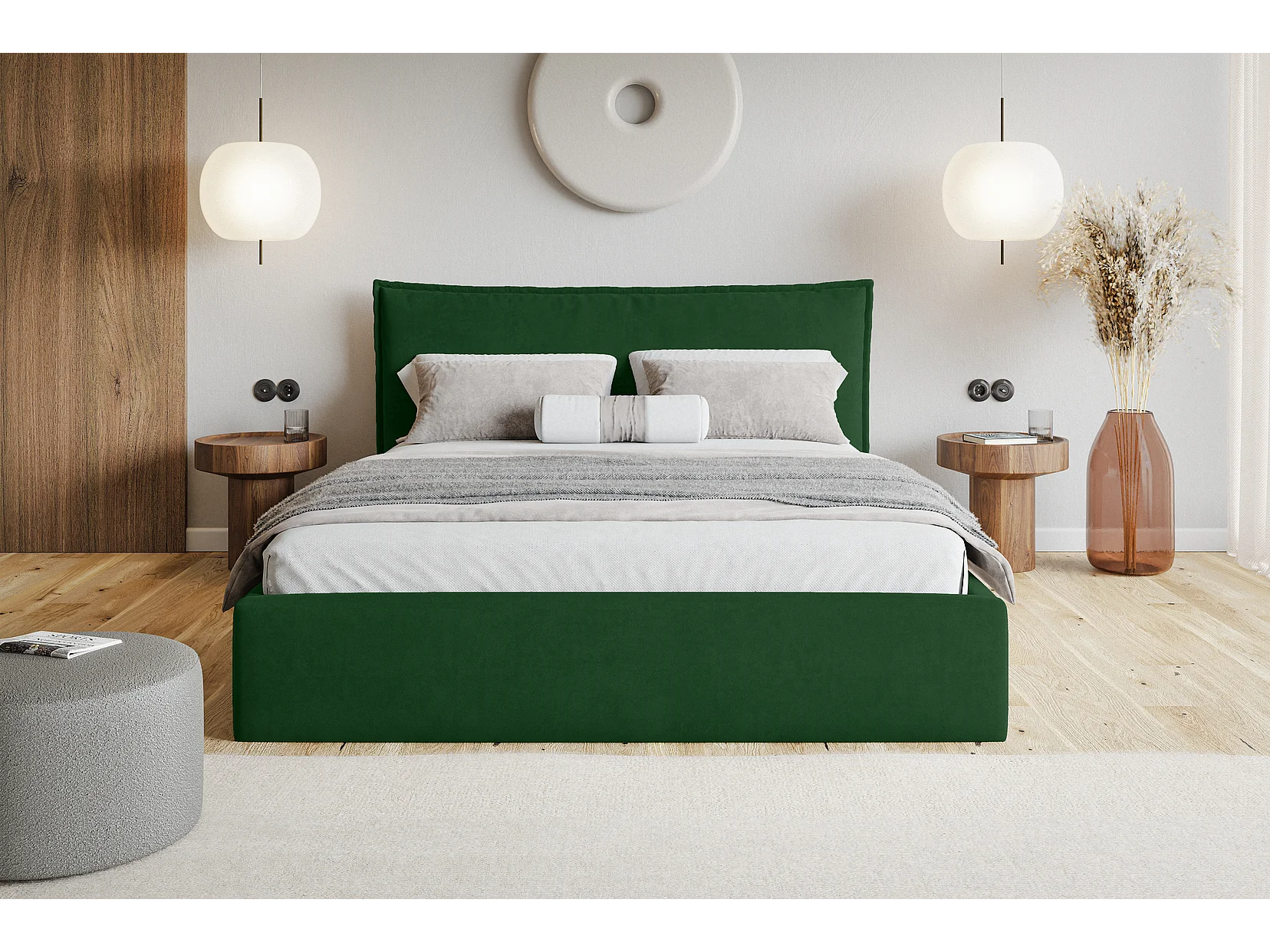 Bed 140x200 Zenito Slim met opbergruimte - hoofdbord in kussenvorm, lattenbodem - Groen (Amor Velvet 4311)