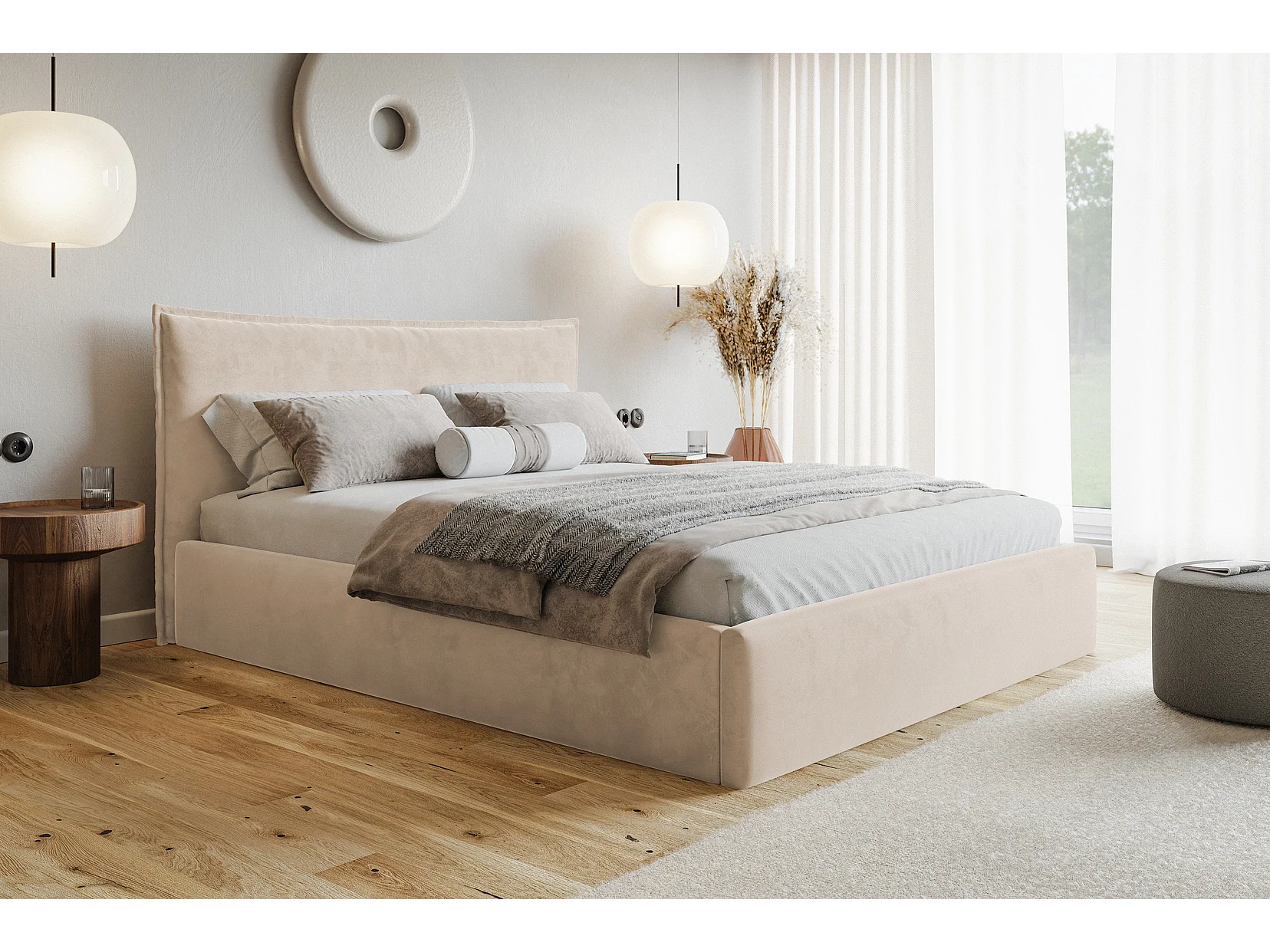 Bed 200x200 Zenito Slim met opbergruimte - hoofdbord in kussenvorm, metalen lattenbodem - Beige (Amor Velvet 4304)