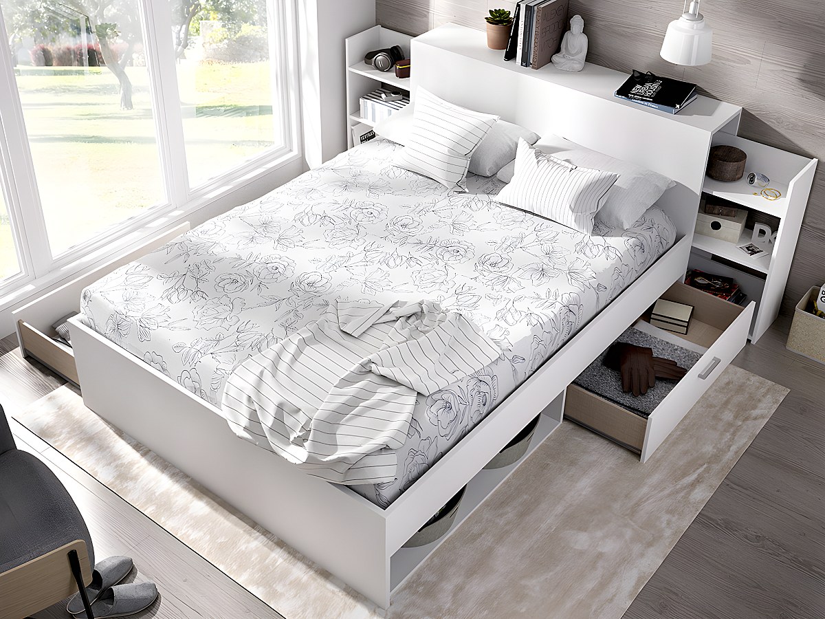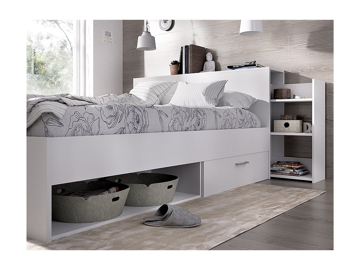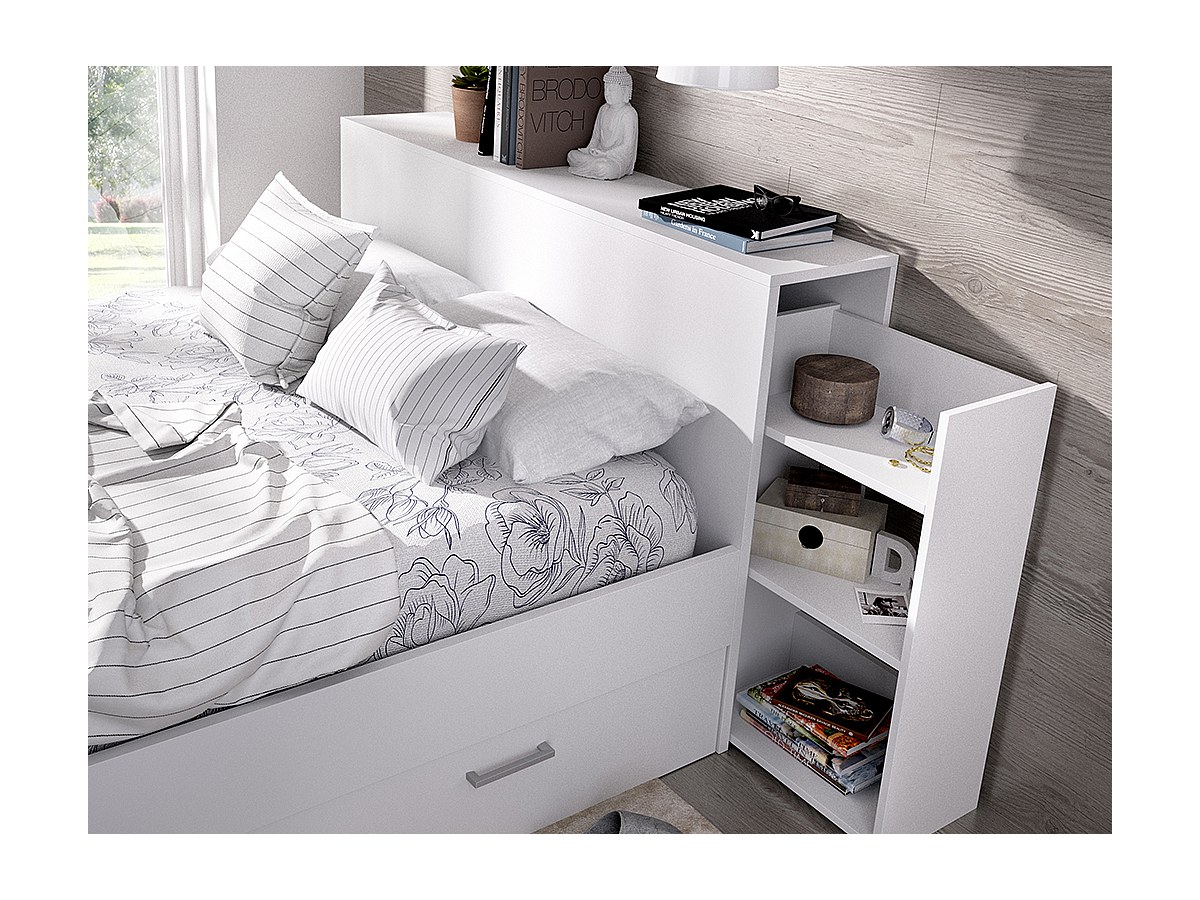 Bed FLORIAN met hoofdeinde bed, opbergruimte en lades - 140 x 190 cm - Kleur: Wit
