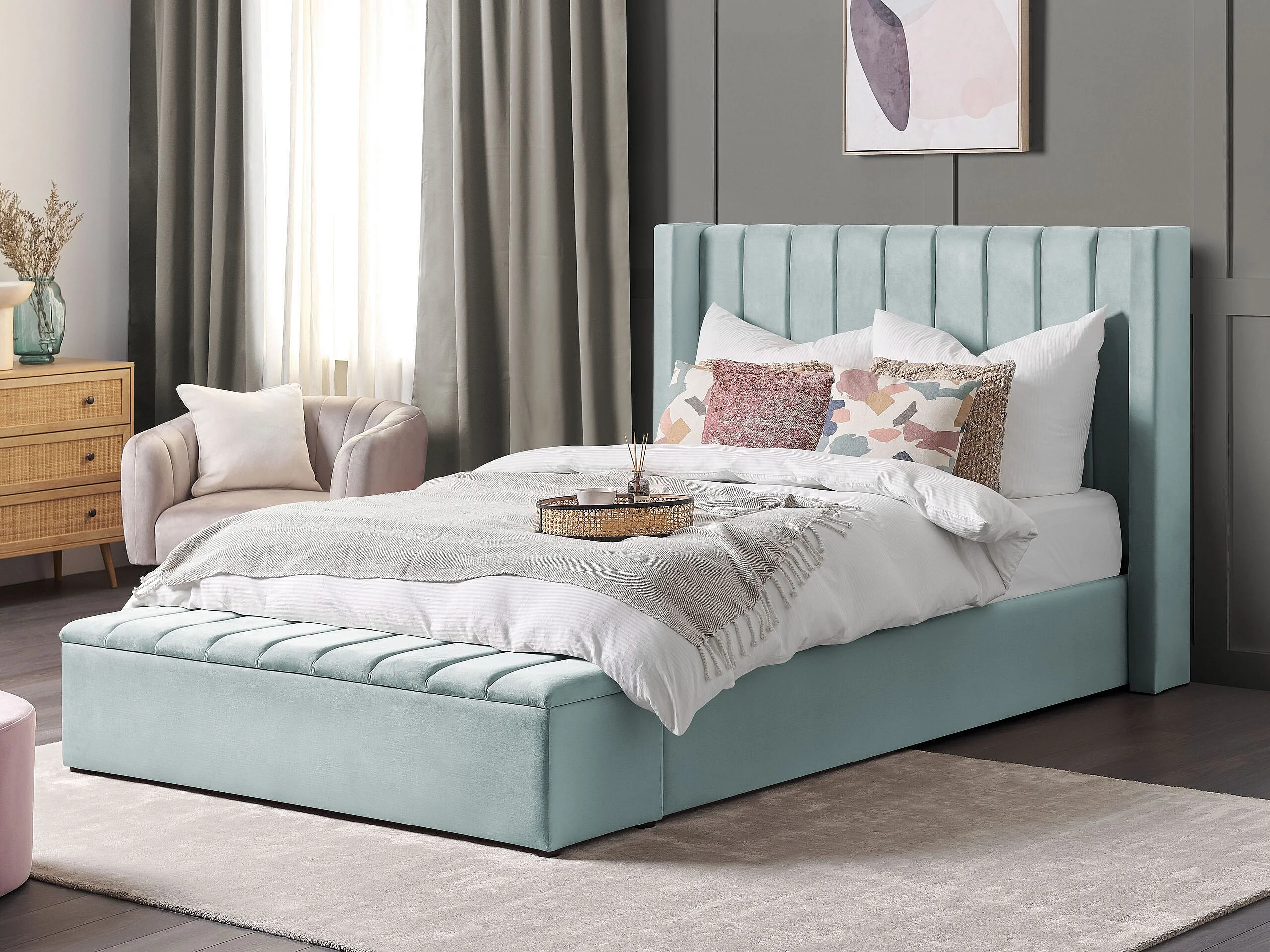 Bed met opbergbankje Fluweel NOYERS 160 x 200 cm Mintgroen