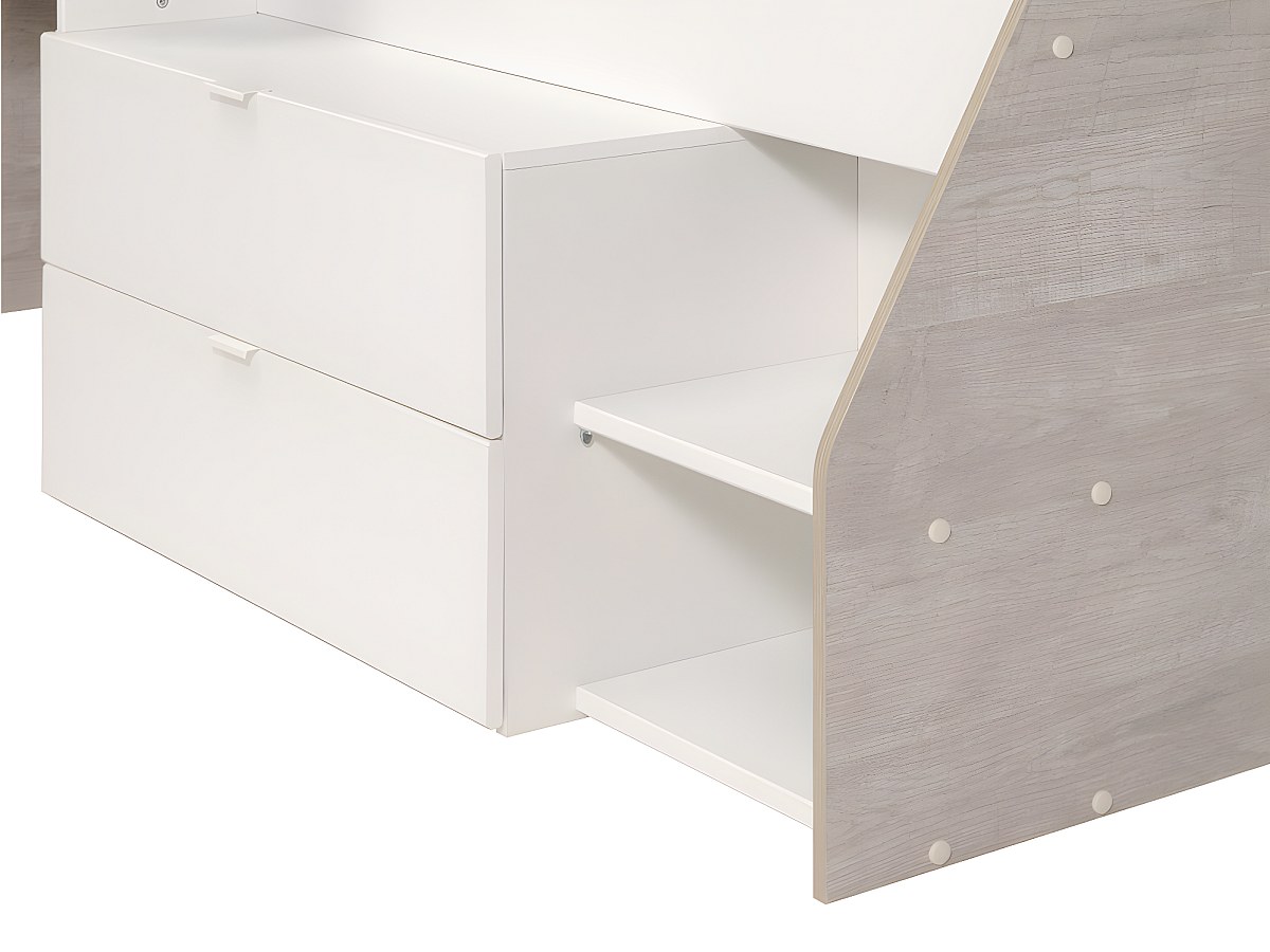 Eenpersoonsbed GISELE bureau en opbergruimte inbegrepen - 90 x 200 cm - Wit en eiken