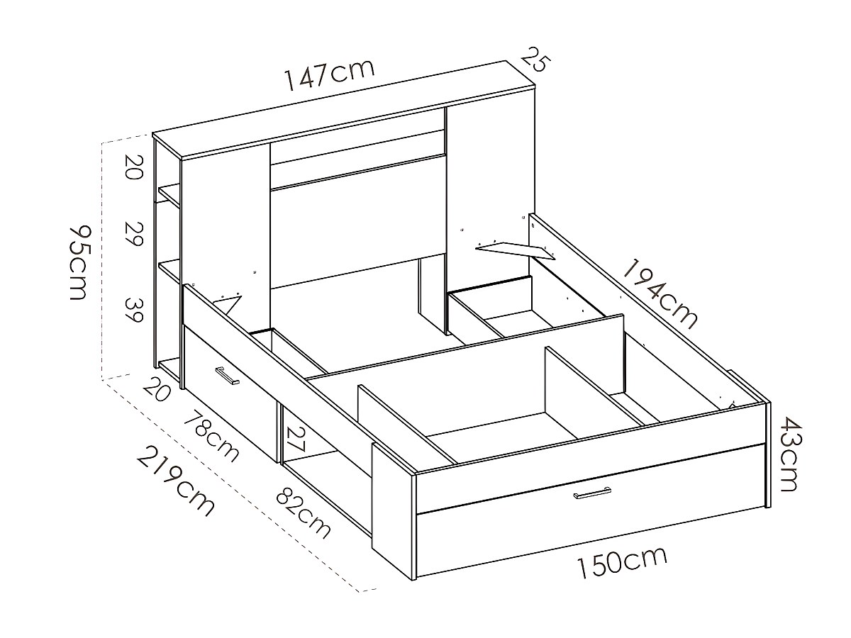 140 x 190 cm: L218,5 x D149,6 x H95 cm