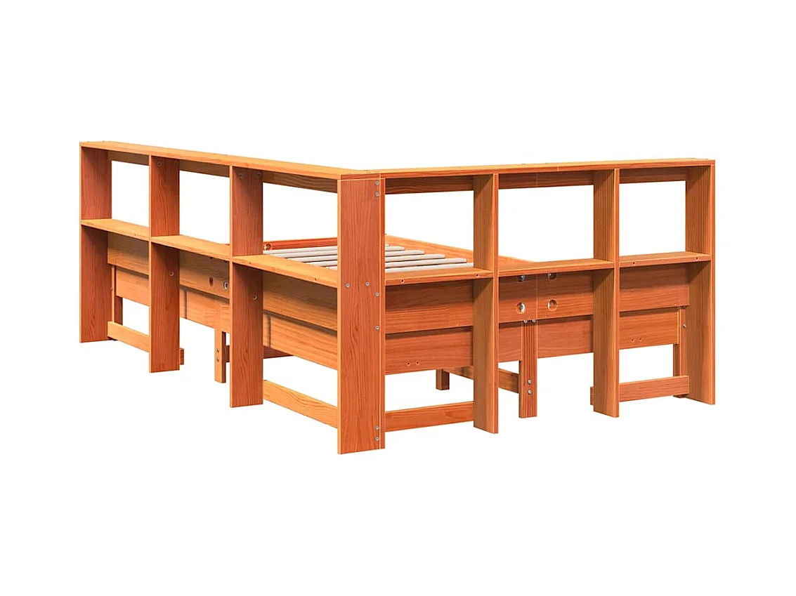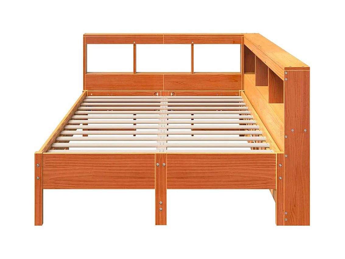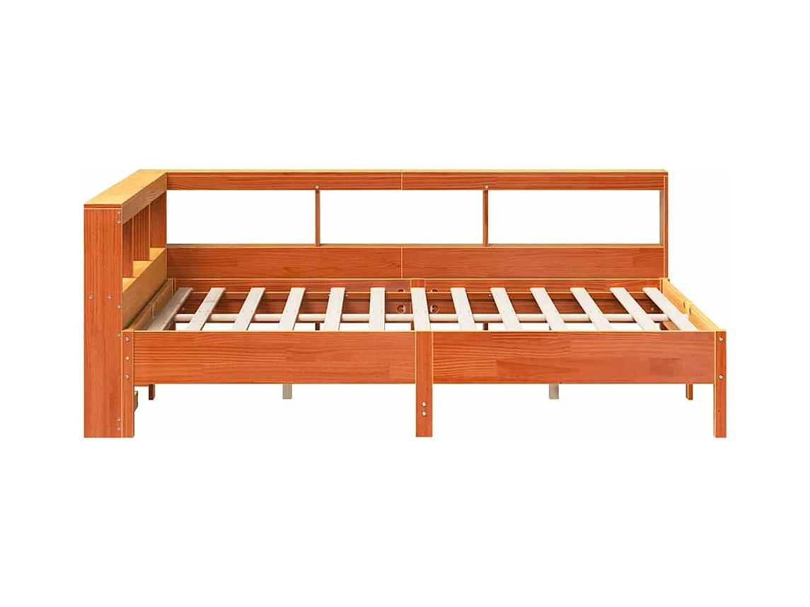 Bed met boekenkast zonder matras grenenhout wasbruin 120x200 cm