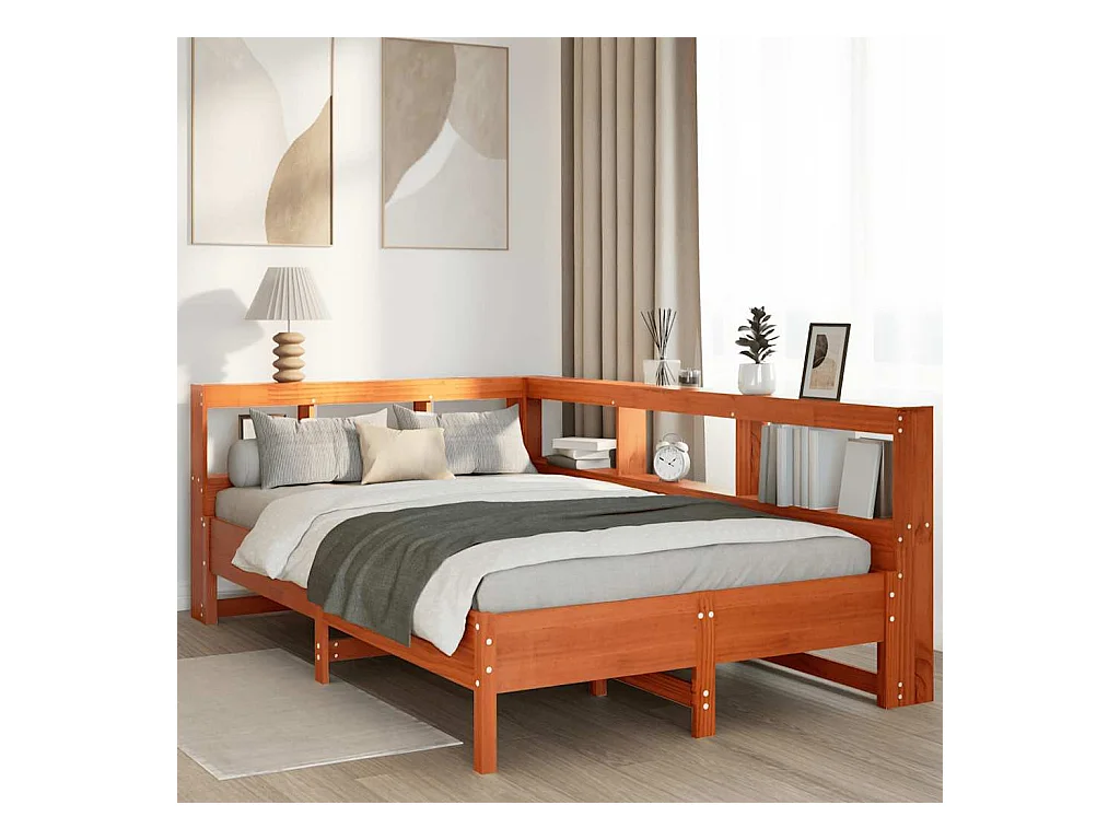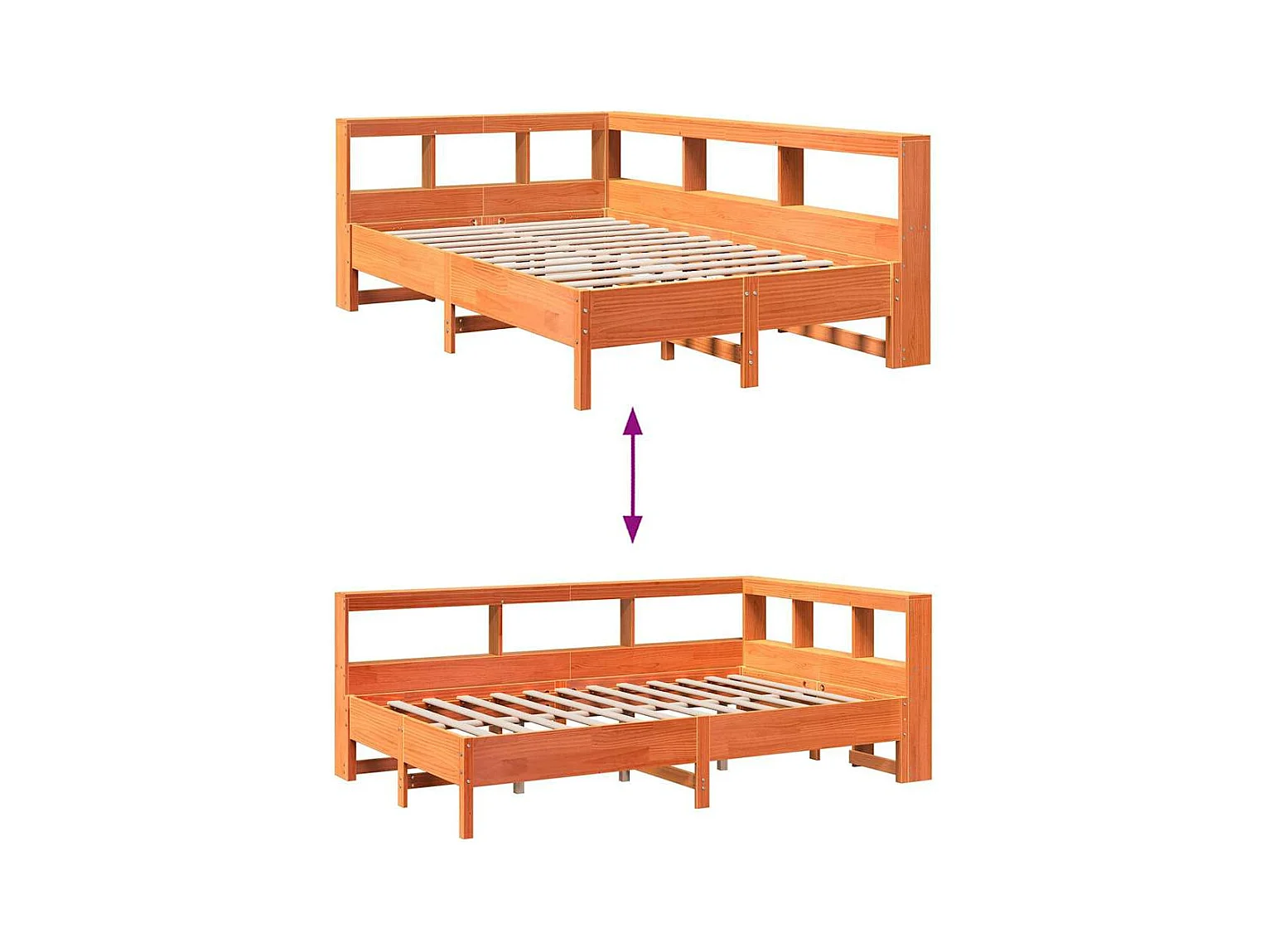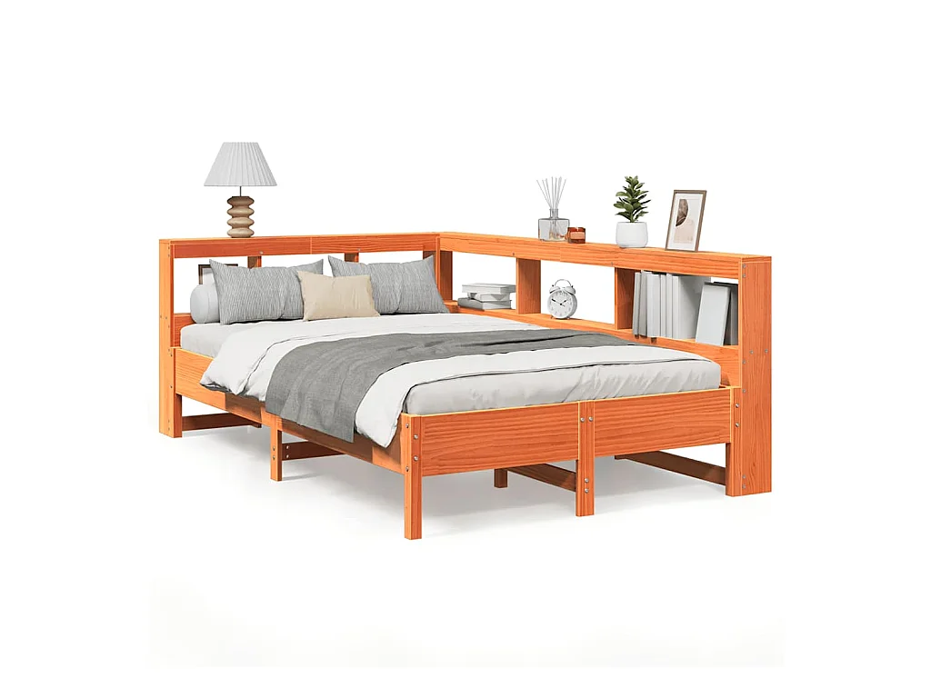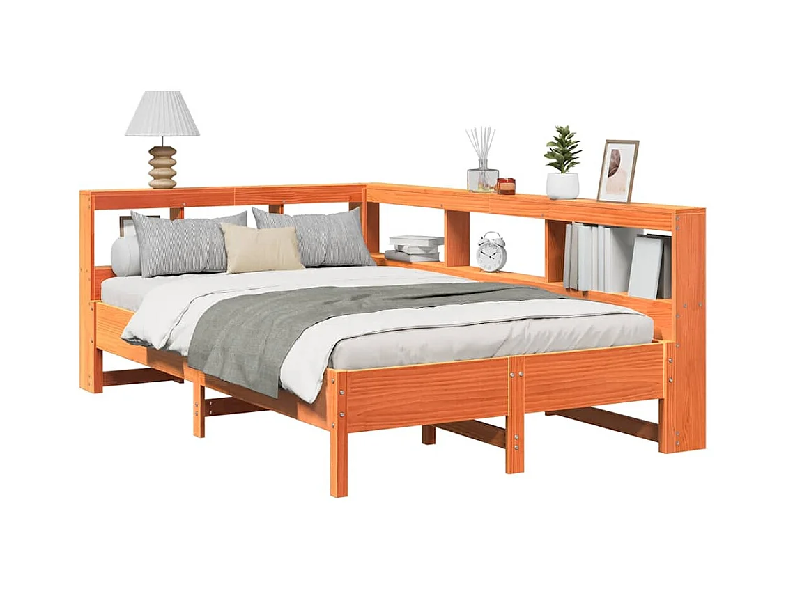 Bed met boekenkast zonder matras grenenhout wasbruin 120x200 cm