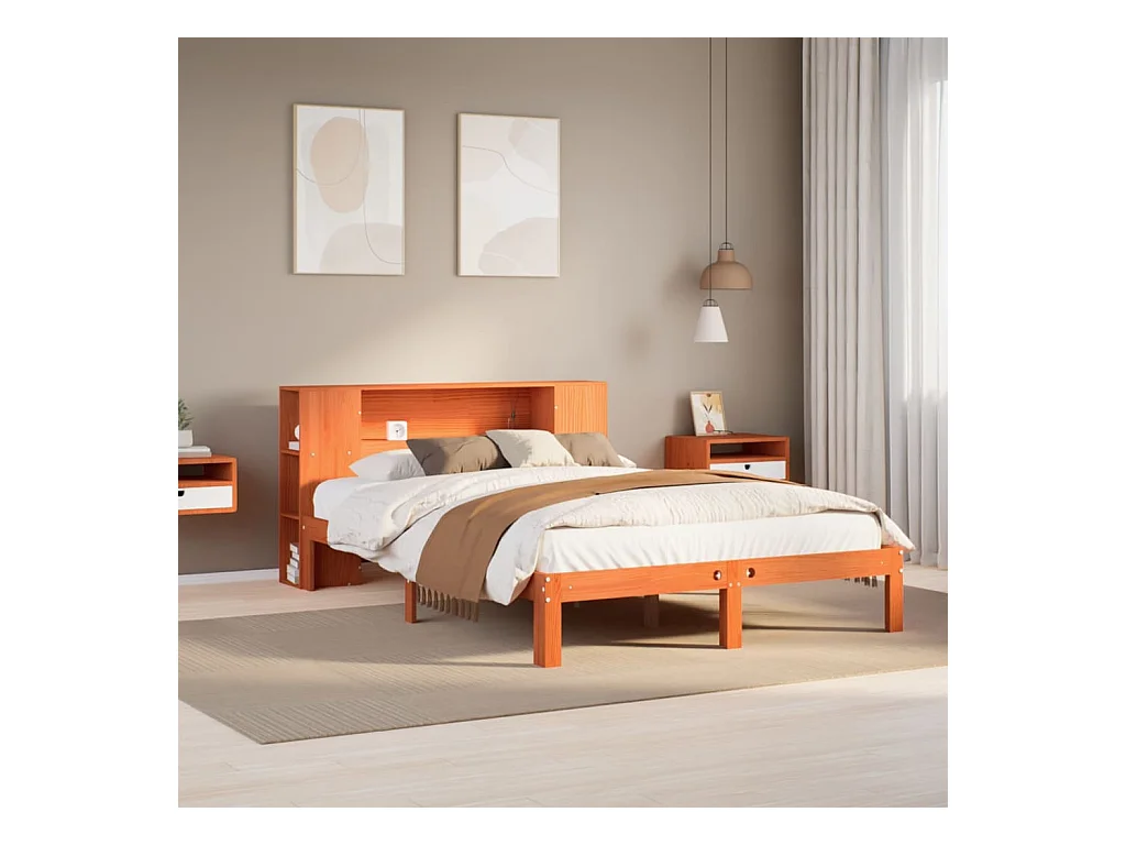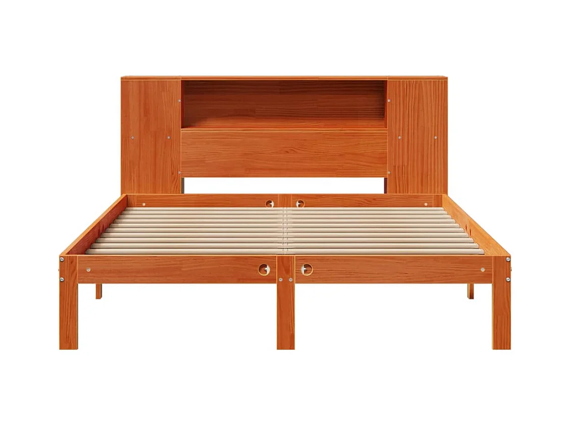 Bed met boekenkast zonder matras grenenhout wasbruin 140x200 cm