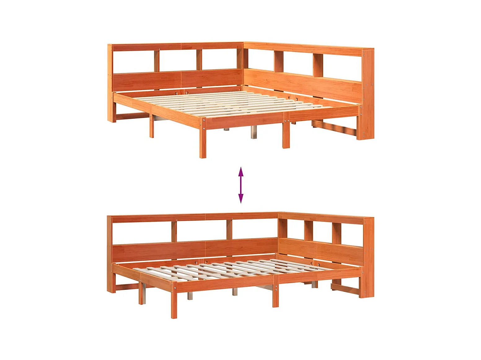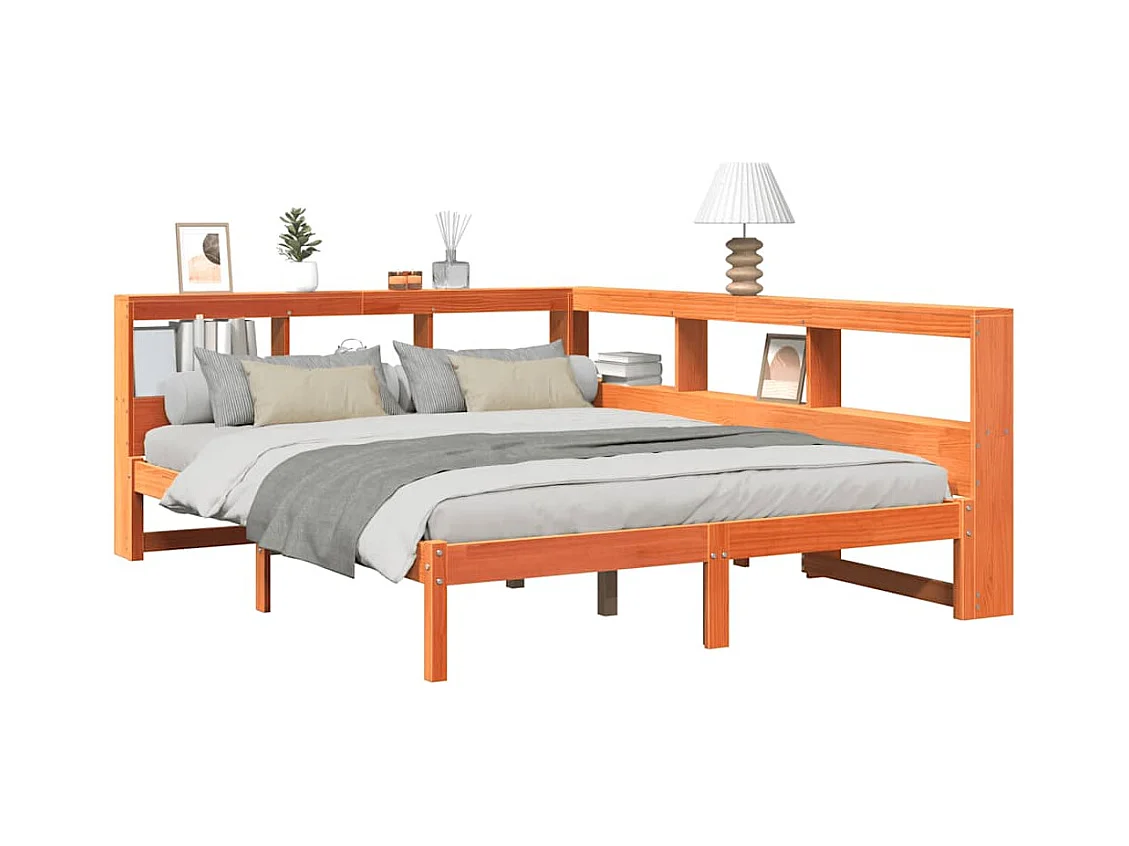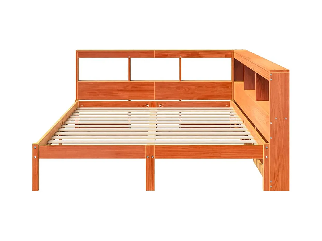 Bed met boekenkast zonder matras grenenhout wasbruin 140x200 cm