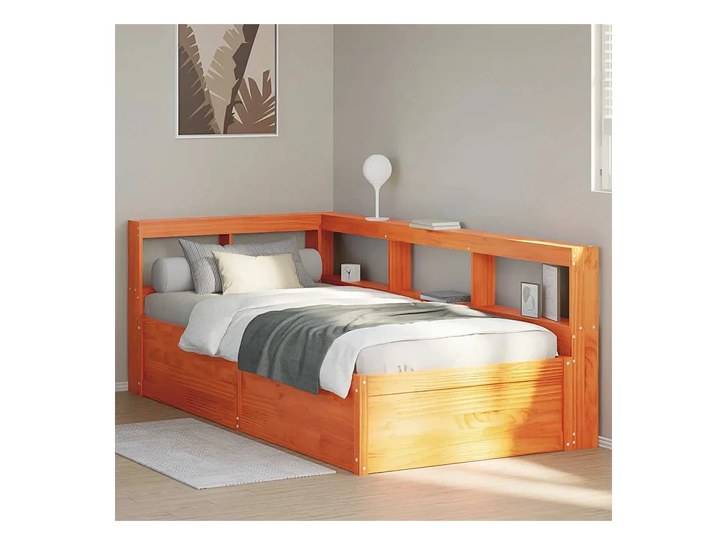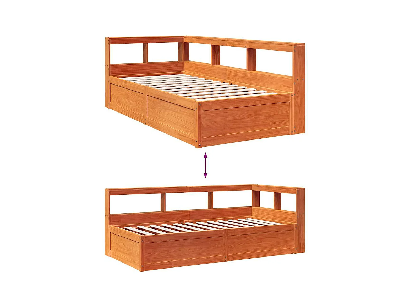 Bed met boekenkast zonder matras grenenhout wasbruin 90x200 cm