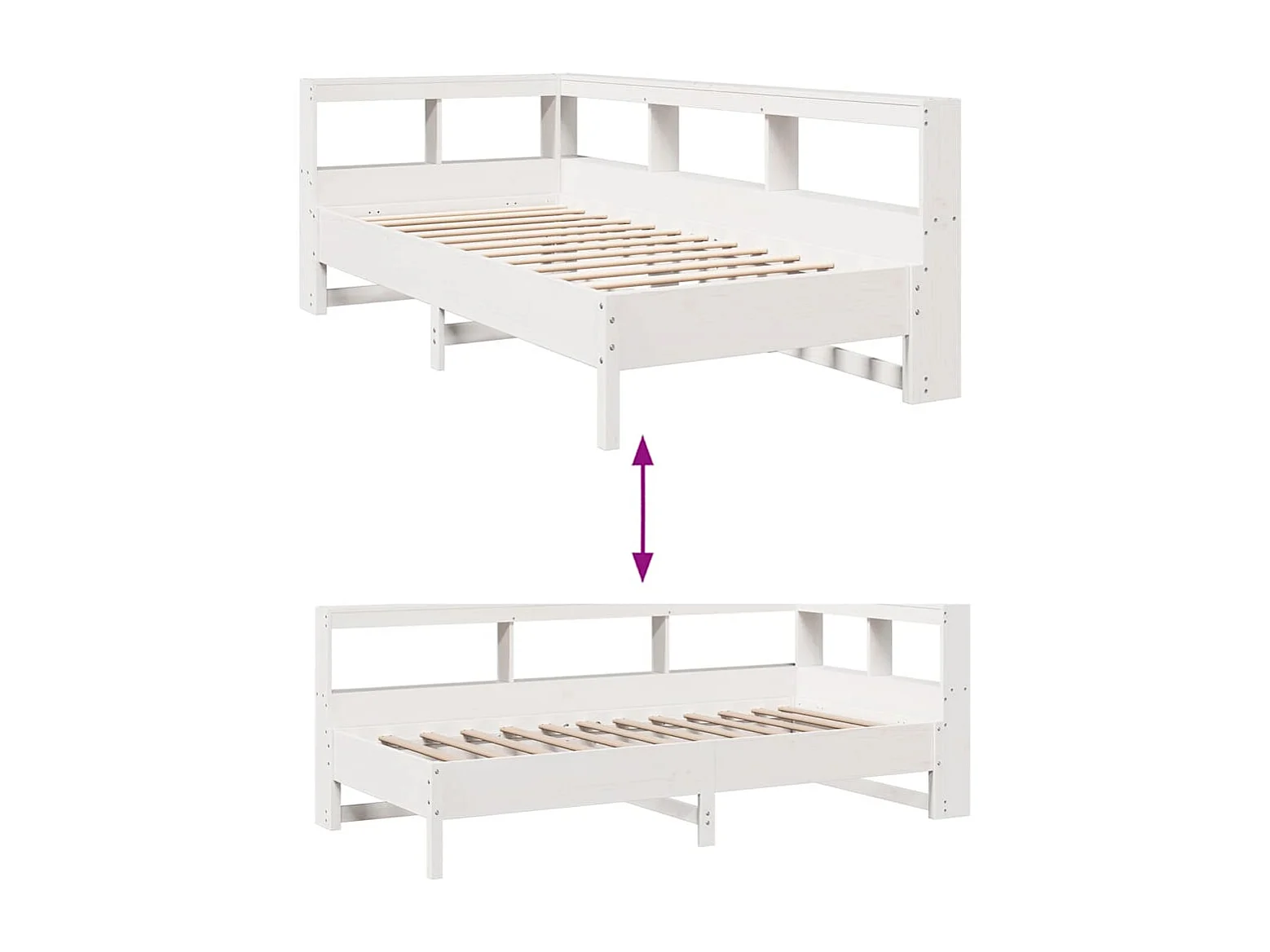 Bed met boekenkast zonder matras grenenhout wit 100x200 cm