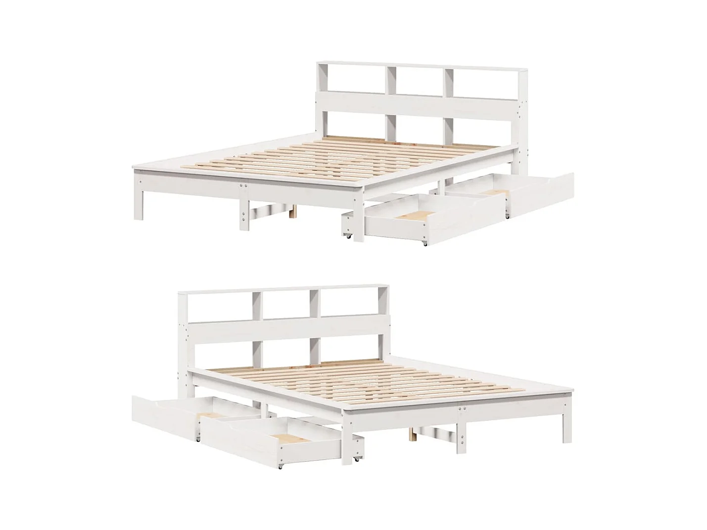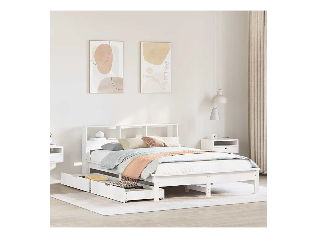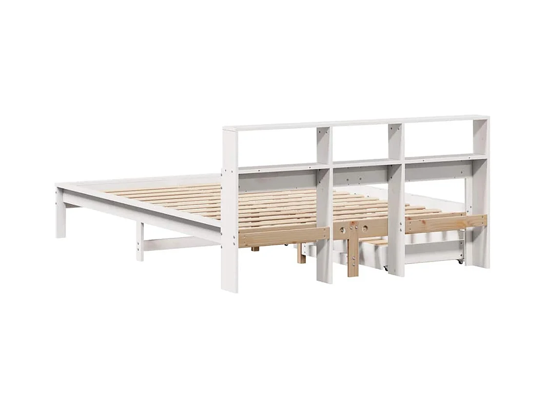 Bed met boekenkast zonder matras grenenhout wit 140x190 cm