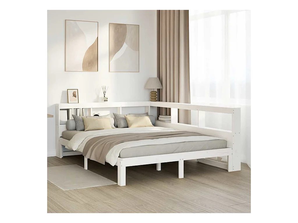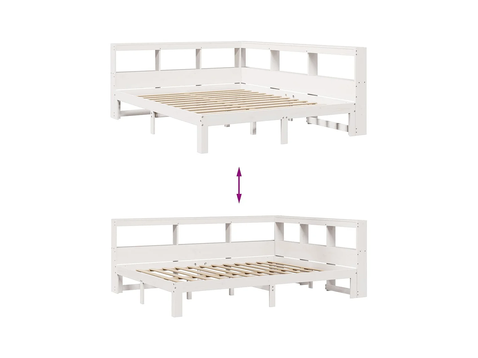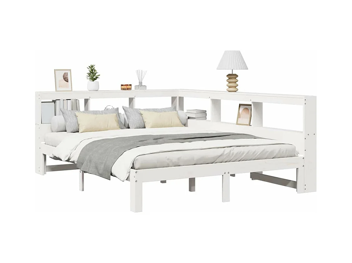Bed met boekenkast zonder matras grenenhout wit 140x200 cm