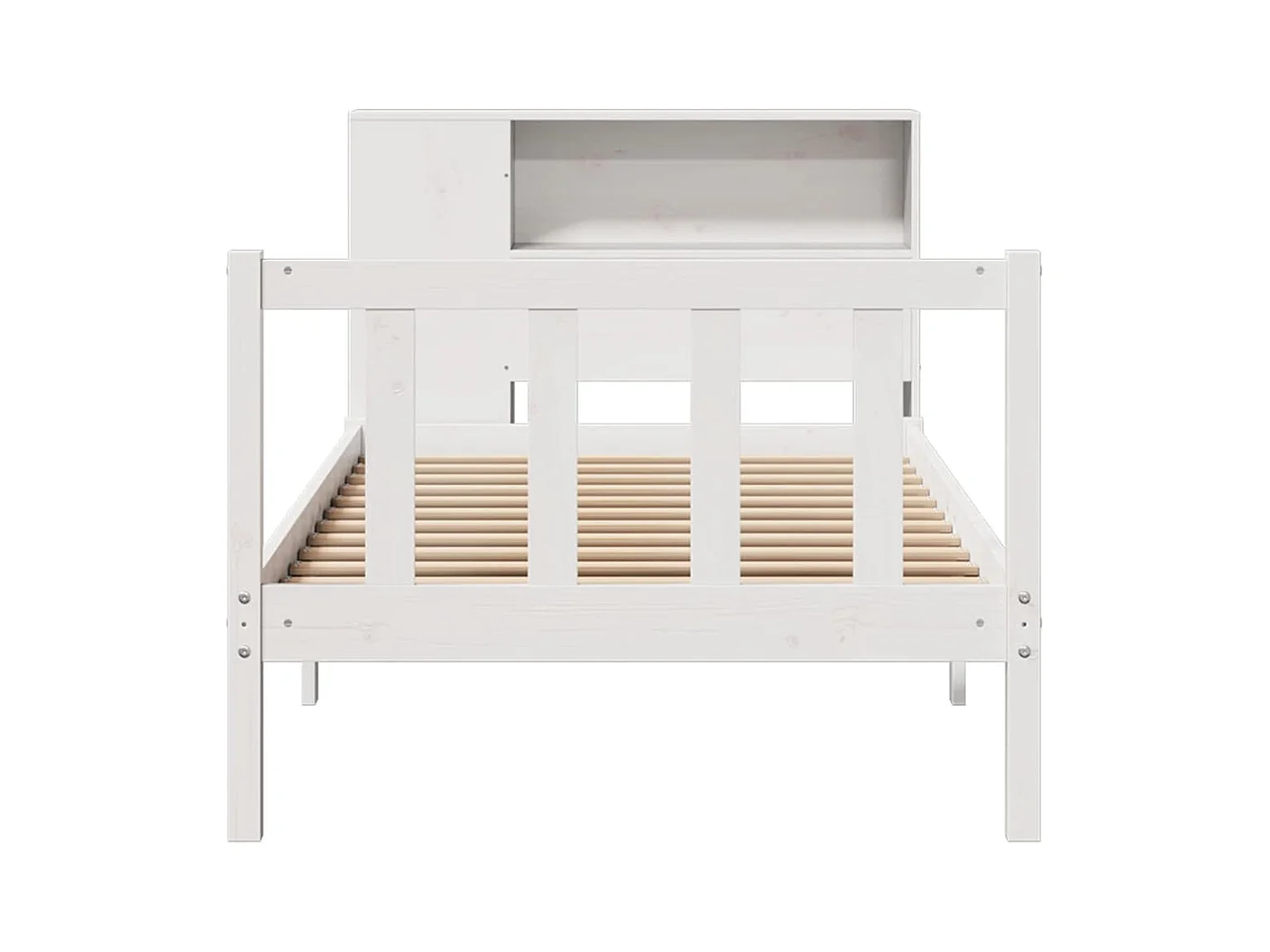 Bed met boekenkast zonder matras massief hout wit 90x190 cm