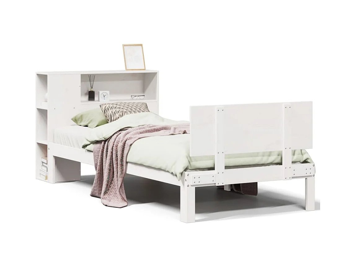 Bed met boekenkast zonder matras grenenhout wit 90x190 cm