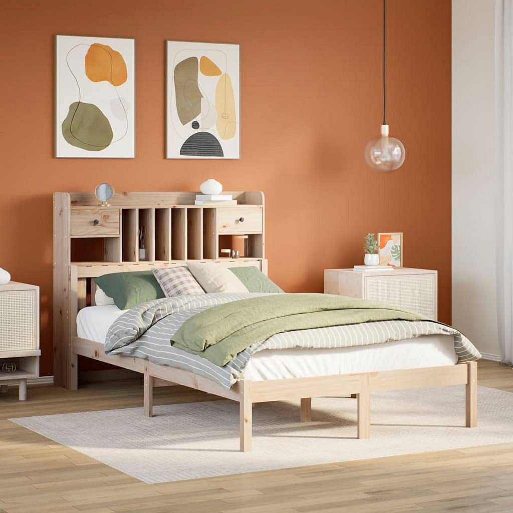Bed met boekenkast zonder matras massief grenenhout 135x190 cm
