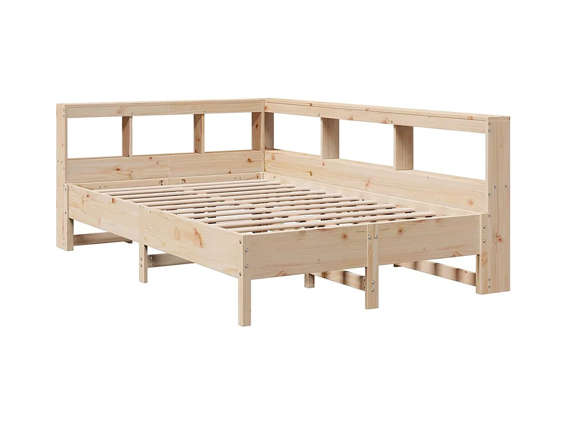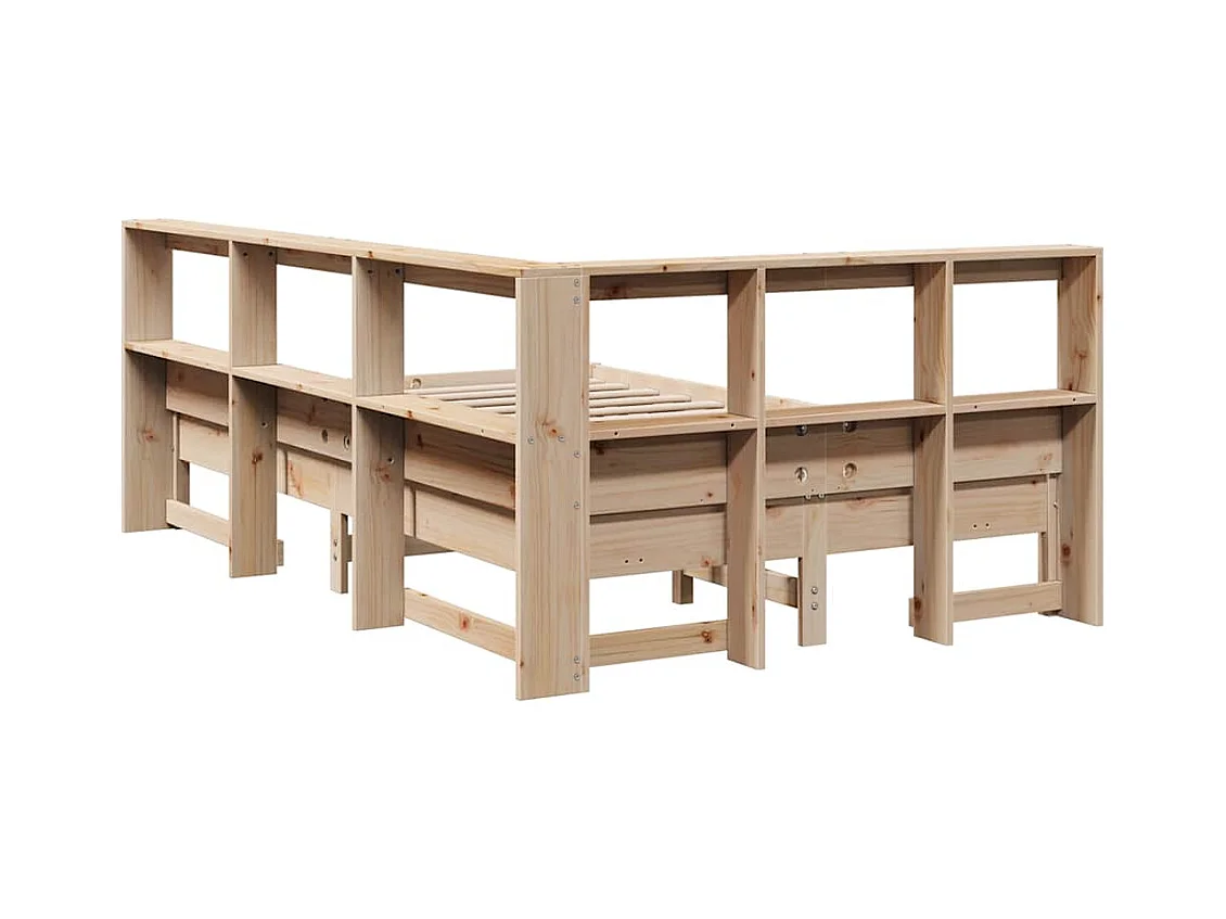 Bed met boekenkast zonder matras massief grenenhout 140x190 cm