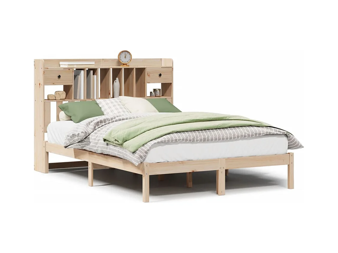 Bed met boekenkast zonder matras massief grenenhout 140x200 cm