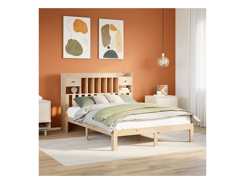 Bed met boekenkast zonder matras massief grenenhout 160x200 cm