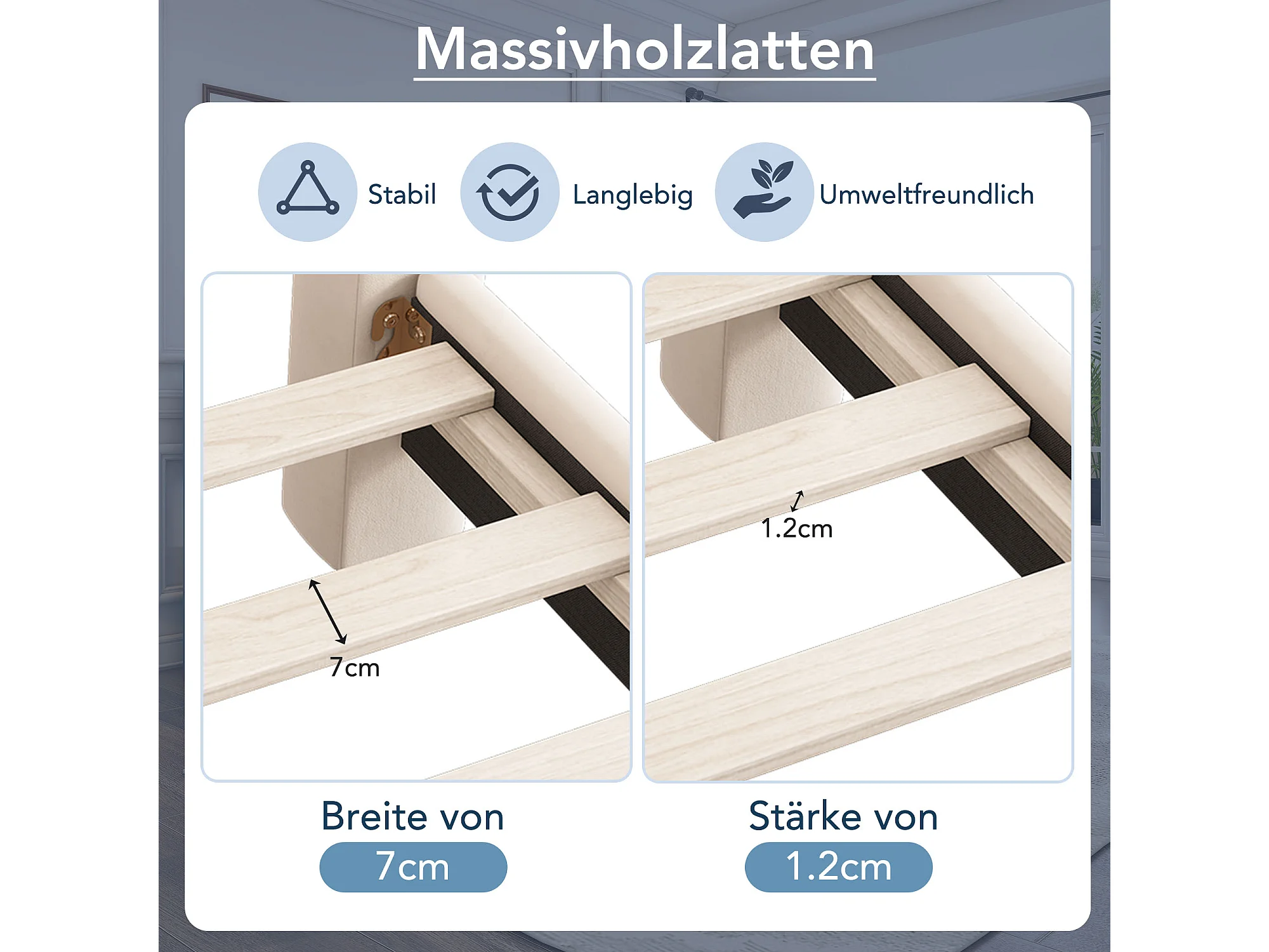 Mona SLIM III in VELUTTO stof, Comfortabel gestoffeerd bed - Ergonomische rugsteun 160x200 cm, Beige