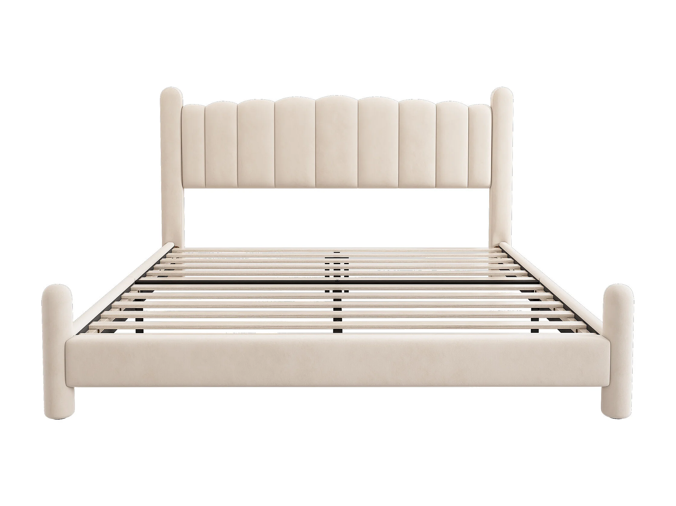 Bed met golvend hoofdeinde en cilindrische poten, met lattenbodem, fluweel, beige, (160x200 cm)