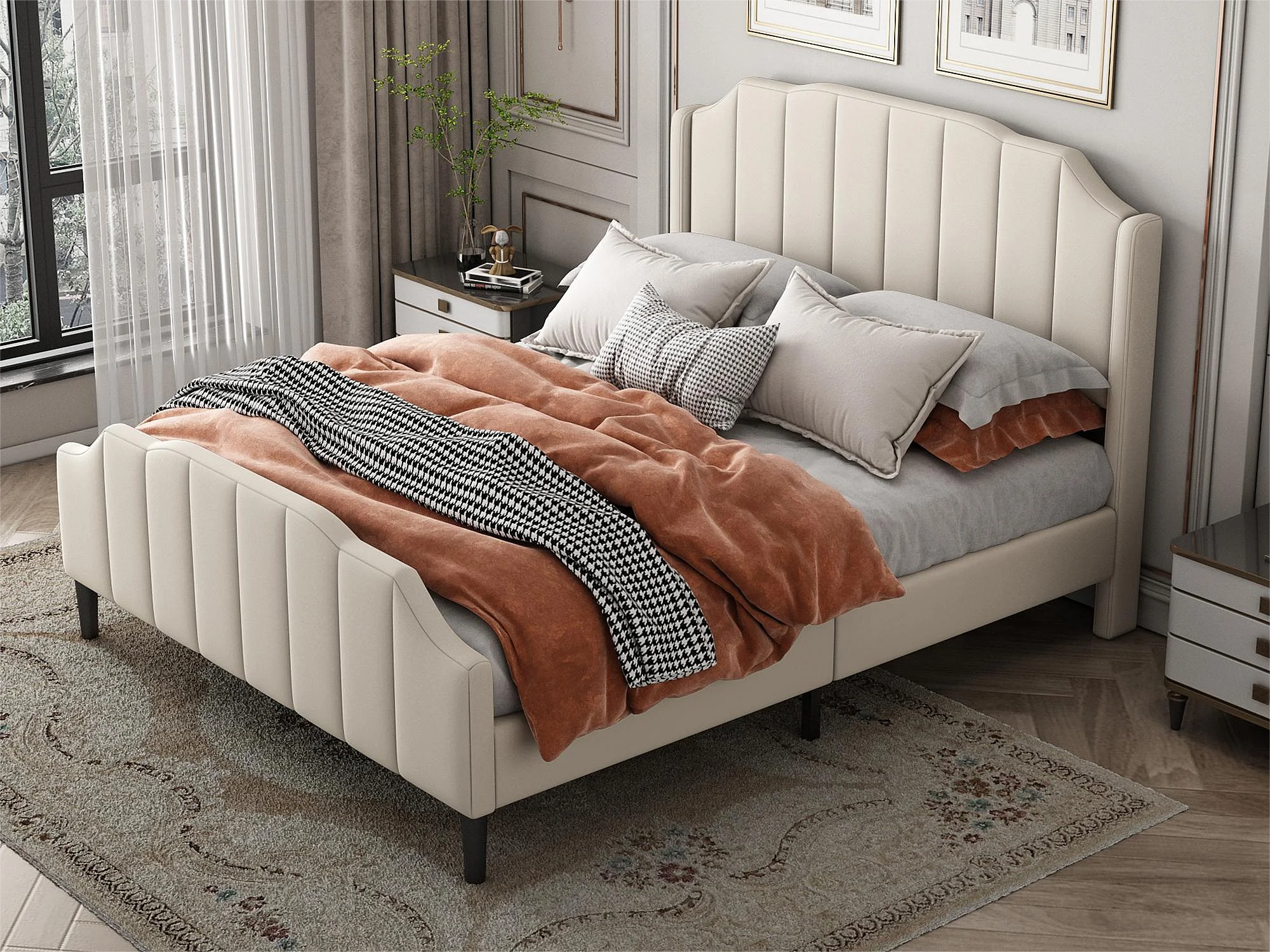 Bed met hoofdbord - 140 x 200 cm - fluweel - bedbodem inbegrepen - beige kleur