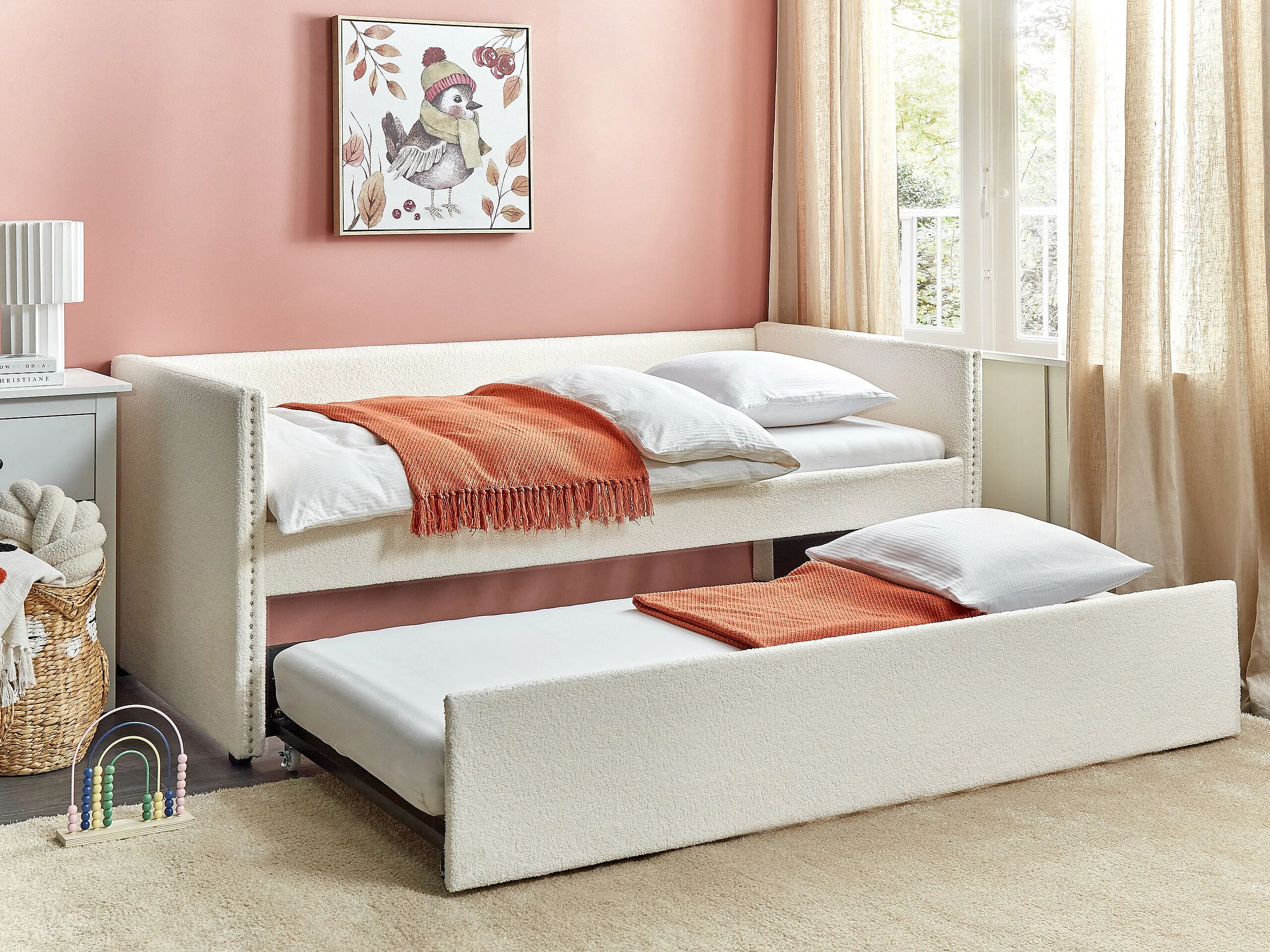 Onderschuifbed Bouclé TROYES 90 x 200 cm Lichtbeige