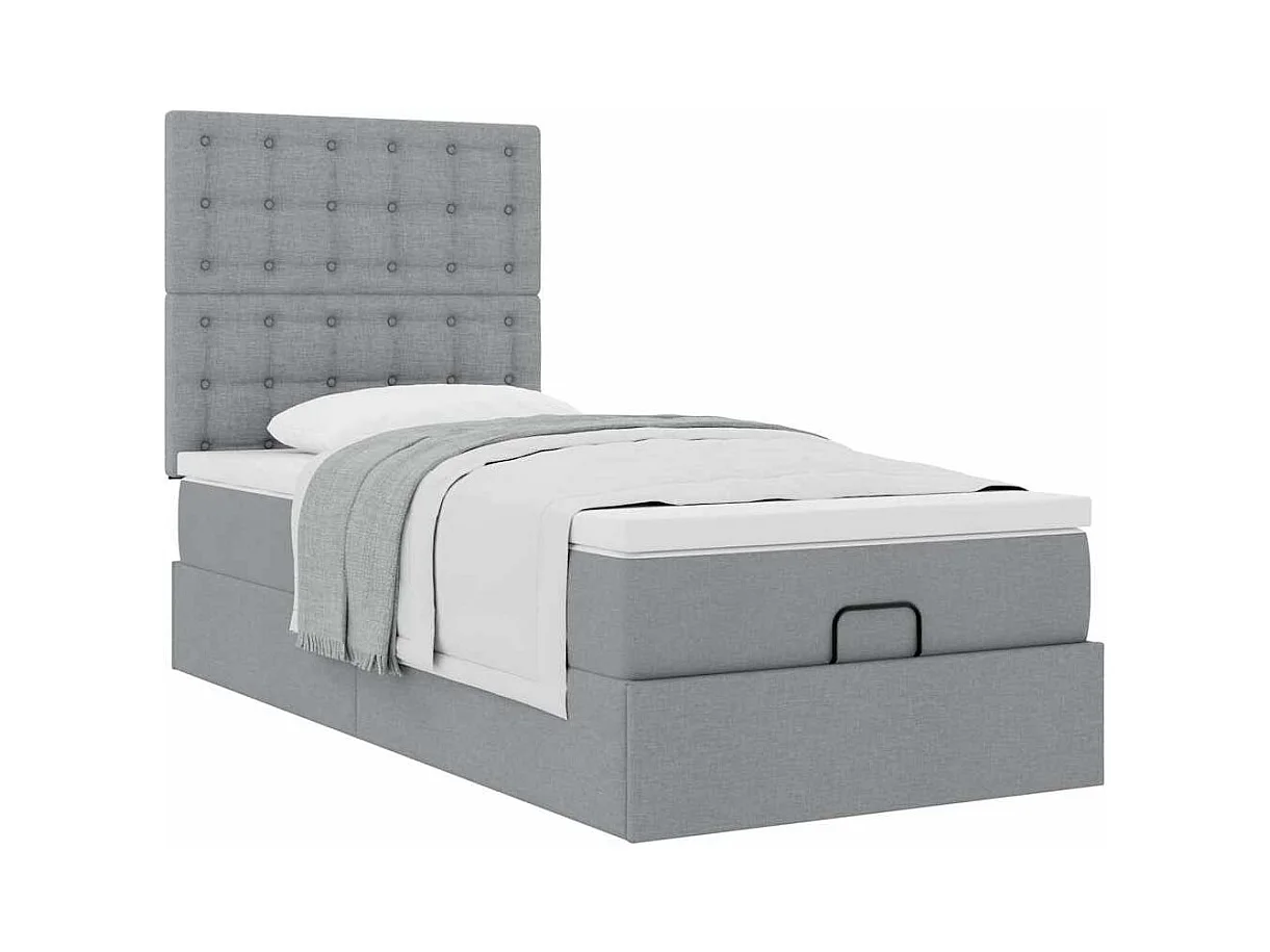 Ottoman bed met matras en LED's 100x200cm stof lichtgrijs